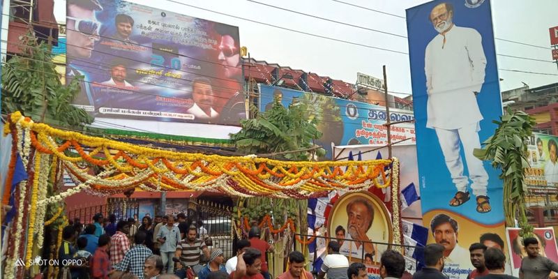 சென்னை கோயம்பேடு ரோகிணி திரையரங்கில் காலை 4 மணி காட்சிக்காக வந்திருந்த ரசிகர்கள், ரஜினியின் கட்அவுட்டுக்கு பாலாபிஷேகம் செய்தும், பட்டாசு வெடித்தும் கொண்டாடினர்.