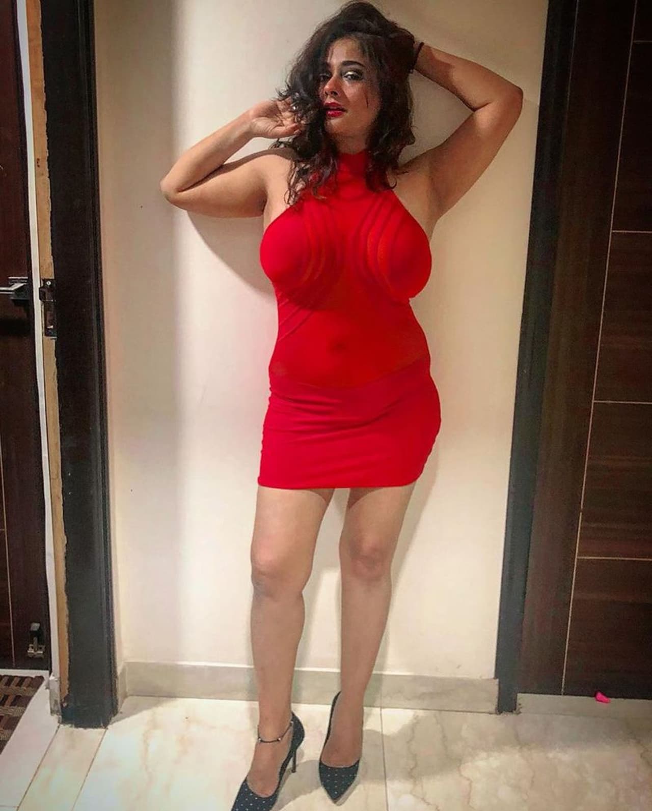தொடை வரை இருக்கும் சிவப்பு நிற ஸ்லீவ் லெஸ் டாப்பை அணிந்து கொண்டு கிரண் கொடுத்துள்ள ஒவ்வொரு போஸும் வேற லெவலுக்கு உள்ளது. அந்த புகைப்படங்களில் முன்னழகு, பின்னழகு, தொப்புள் என அனைத்தும் பட்டவர்த்தனமாக தெரியும் படி போஸ் கொடுத்துள்ளார் கிரண்.