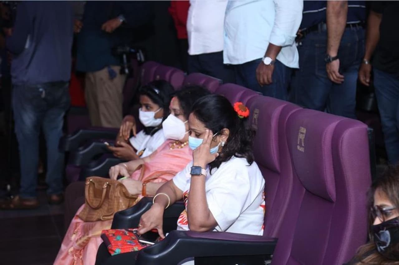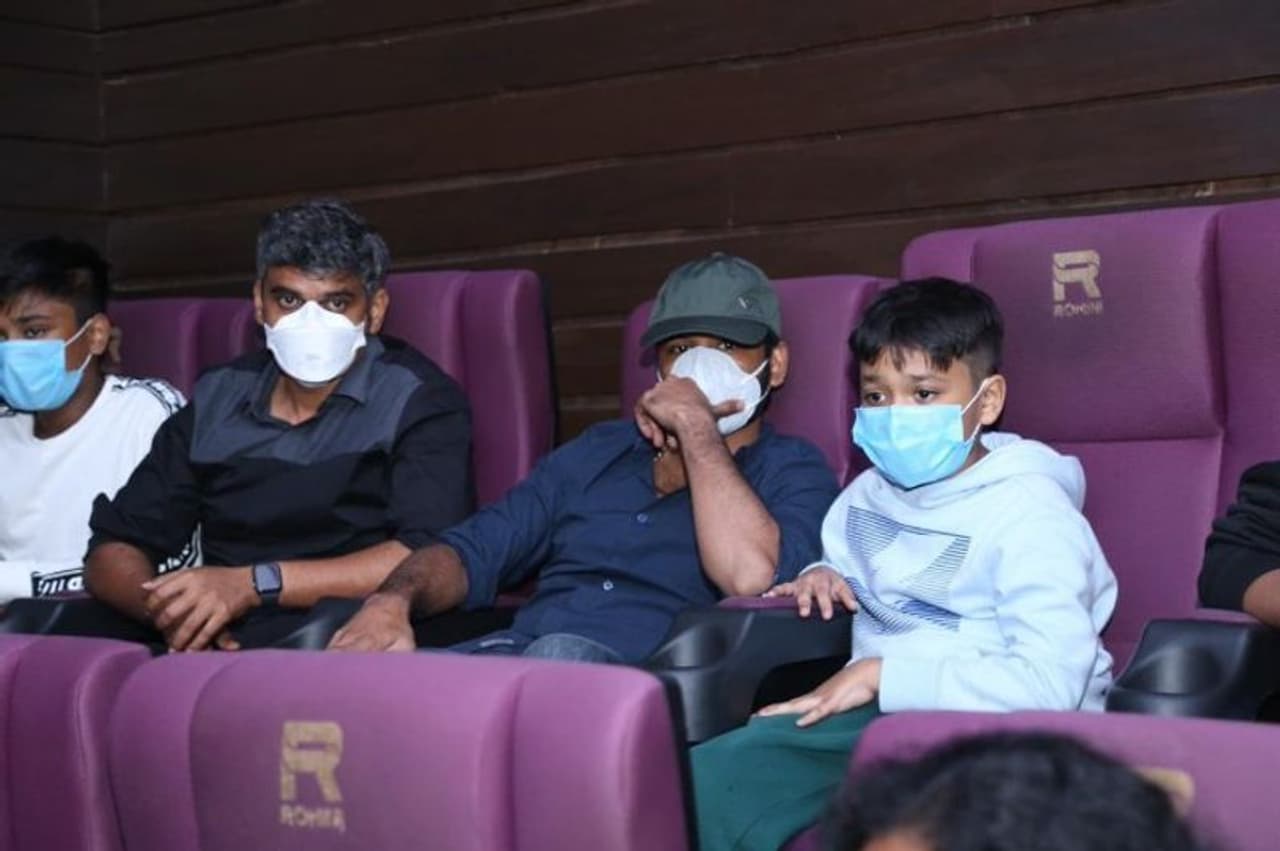 ஏற்கனவே சூப்பர் ஸ்டார் ரஜினிகாந்த், தன்னுடைய குடும்பத்துடன்... 'அண்ணாத்த' படத்தை பார்த்து மிகவும் ரசித்ததாக hoote செயலி மூலம் சமீபத்தில் தெரிவித்திருந்தார். அப்போது தன்னுடைய மூத்த மருமகனான தனுஷ், மற்றும் பேரன்கள் இருவரும் அவருடைய தந்தையுடன் ஷூட்டிங்கில் கொடைக்கானலில் இருந்ததால் அவர்களால் இந்த படத்தை பார்க்க முடியவில்லை என்பதையும் கூறி இருந்தார். இந்நிலையில் தனுஷ், தன்னுடைய மகன்கள் மற்றும் குடும்பத்தினருடன் ரசிகர்களுடன் 'அண்ணாத்த' படத்தை பார்த்து மகிழ்ந்துள்ளார். இந்த புகைப்படங்கள் சமூக வலைத்தளத்தில் வெளியாகியுள்ளது.