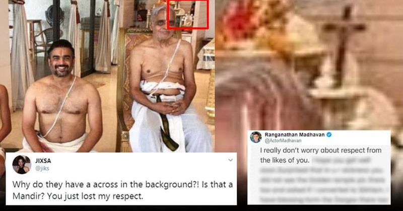 நடிகர் மாதவன் தனது டுவிட்டர் பக்கத்தில் தனது ரசிகர்களுக்கு சுதந்திர தின வாழ்த்துக்களை தெரிவித்திருந்தார். அதில் சுதந்திர தினவிழா, ரக்சா பந்தன் மற்றும் ஆவணி அவிட்ட வாழ்த்துக்களை கூறி அவர் வெளியிட்ட புகைப்படத்தை பார்த்து ரசிகர் ஒருவர் மத ரீதியிலாக கேள்வியை எழுப்பியுள்ளார்.