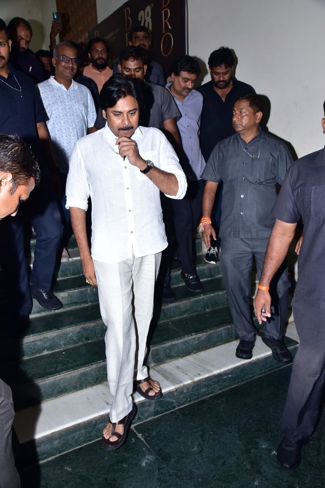 இயக்குனரும், நடிகருமான தம்பிராமையா நடித்த 'வினோதய சித்தம்' திரைப்படம் கடந்த 2021 ஆம் ஆண்டு நேரடியாக ஓடிடி தளத்தில் வெளியாகி, விமர்சன ரீதியாக நல்ல வரவேற்பை பெற்ற நிலையில்... தற்போது இந்த படத்தை 'ப்ரோ' என்கிற பெயரில் தெலுங்கில் ரீமேக் செய்துள்ளார் இயக்குனர் சமுத்திரக்கனி. இந்த படத்தில் சமுத்திரகனி நடித்த கதாபாத்திரத்தில் பவன் கல்யாண் நடிக்க, தம்பி ராமையா கதாபாத்திரத்தில் சாய் தேஜ் நடித்துள்ளார். ஜூலை 28ஆம் தேதி இப்படம் திரையரங்குகளில் வெளியாக உள்ள நிலையில், இந்தப் படத்தின் ப்ரீ ரிலீஸ் நிகழ்ச்சி ஹைதராபாத்தில் மிகவும் பிரம்மாண்டமாக நடைபெற்றது. இதில் நடிகர் பவன் கல்யாண், சாய்தேஜ், சமுத்திரக்கனி உள்ளிட்ட படக்குழுவினர் பலர் கலந்து கொண்டனர்.