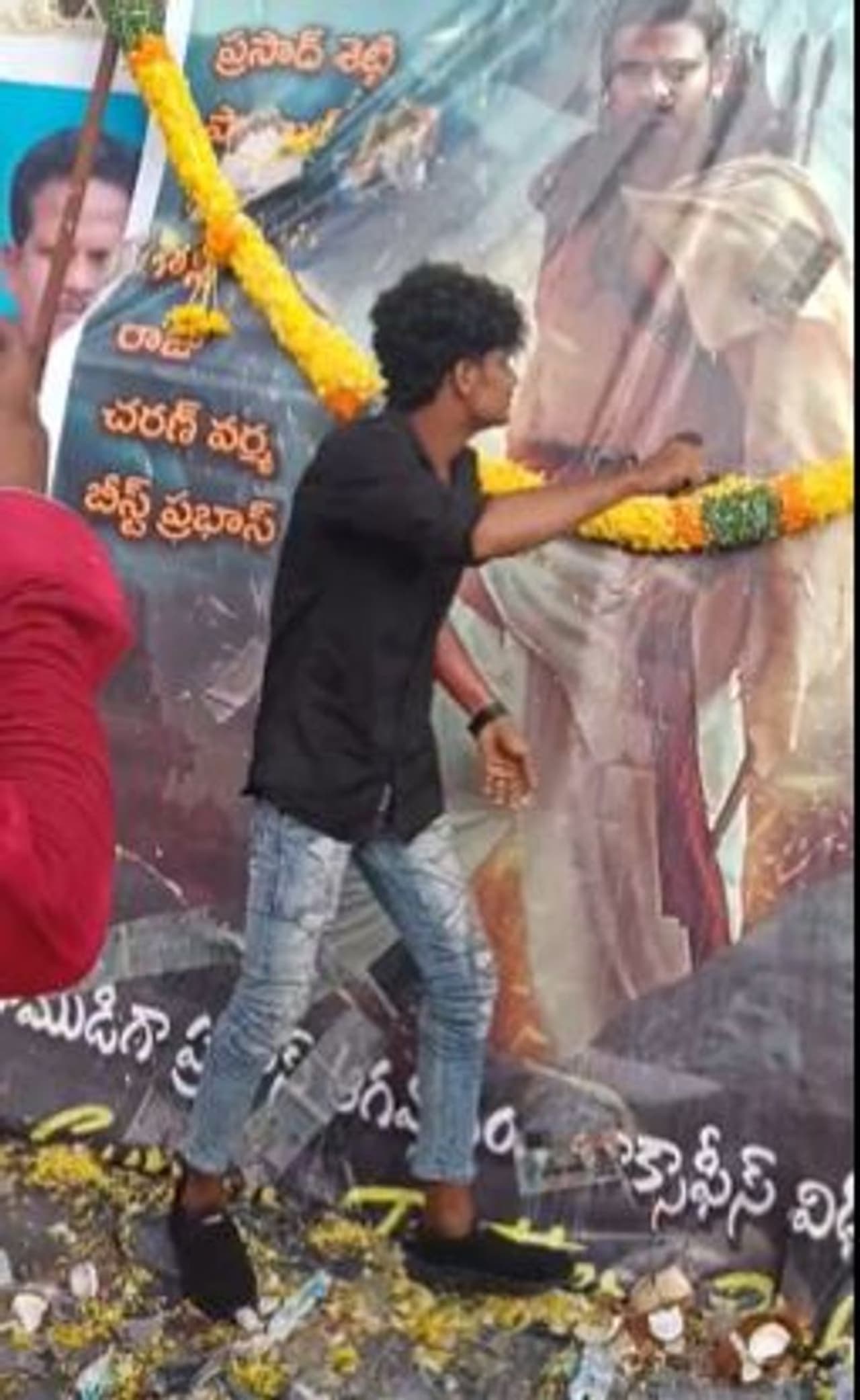 நடிகர் பிரபாஸ் ராமராக நடித்துள்ள 'ஆதிபுருஷ்' திரைப்படம் இன்று வெளியான நிலையில், அவரின் தீவிர ரசிகர்கள் இப்படத்தை ஆரவாரத்தோடு வரவேற்றுள்ளனர். குறிப்பாக ஒரு ரசிகர், பிரபாஸின் போஸ்டர் முன்பு கையை அறுத்துக் கொண்டு, அந்த போஸ்டரில் ரத்தத்தை தடவிய வீடியோ வெளியாகி, ரசிகர்களின் கண்டங்களுக்கு ஆளாகியுள்ளது.