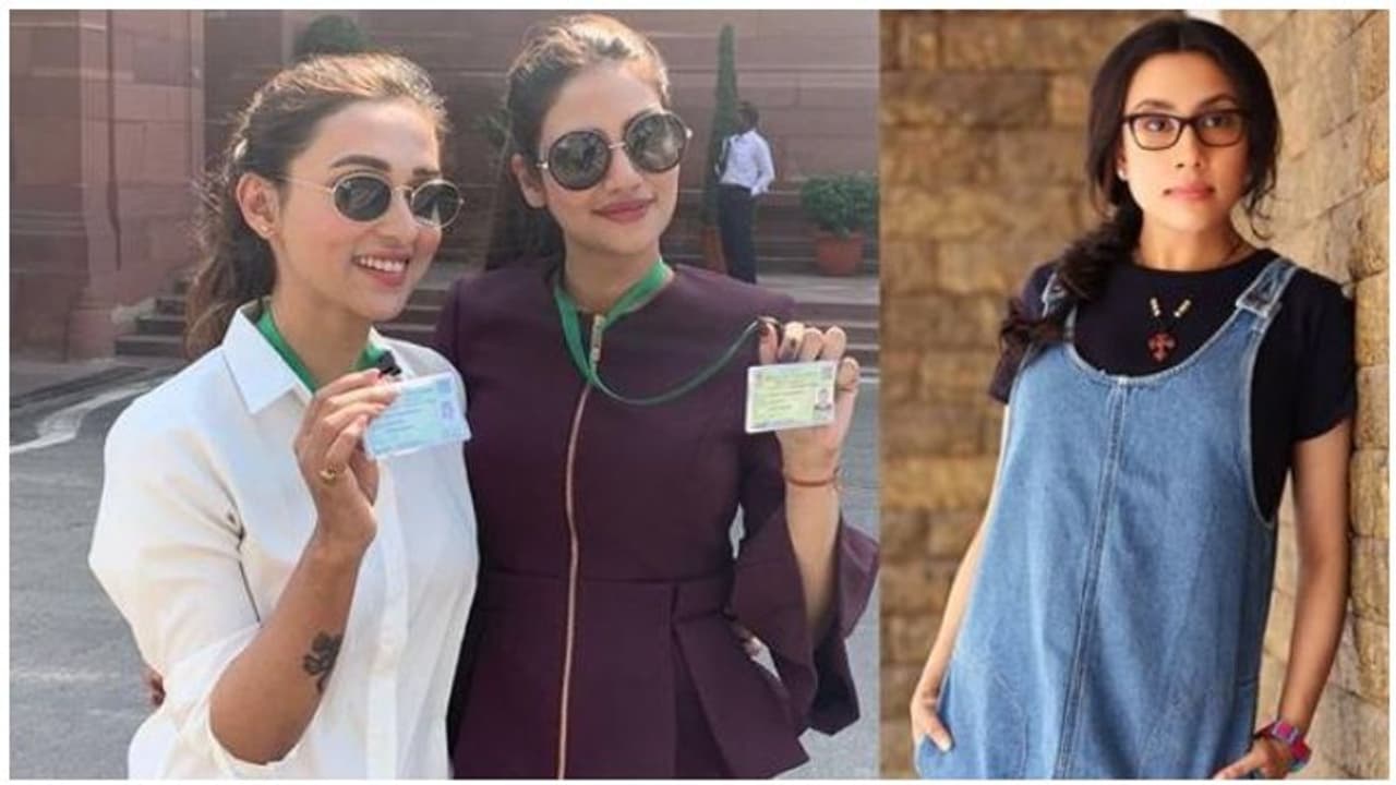 திரிணாமுல் காங்கிரஸ் கட்சி சார்பில் ஜாதவ்பூர் தொகுதியில் 30 வயது நடிகையான மிமி சக்ரபோர்த்தியும், பசிராத் தொகுதியில் 29 வயது நடிகை நுஸ்ரத்தும் வெற்றிபெற்றனர். முதல்முறையாக எம்.பி.யாகியுள்ள இருவரும் மாடர்ன் உடையில் சென்று தங்களது அடையாள அட்டையுடன் நாடாளுமன்றத்திற்கு முன் நின்று புகைப்படம் எடுத்துக் கொண்டனர்.இந்த புகைப்படங்களை தங்களது டுவிட்டர் பக்கத்திலும் வெளியிட்டனர். நவநாகரீக உடையில் ஜீன்ஸ் பேண்ட், டீ ஷர்ட் அணிந்து அவர்கள் நாடாளுமன்றத்திற்குள் புகைப்படங்கள் எடுத்துக் கொண்டதற்கு பலரும் கண்டனம் தெரிவித்துள்ளனர்.