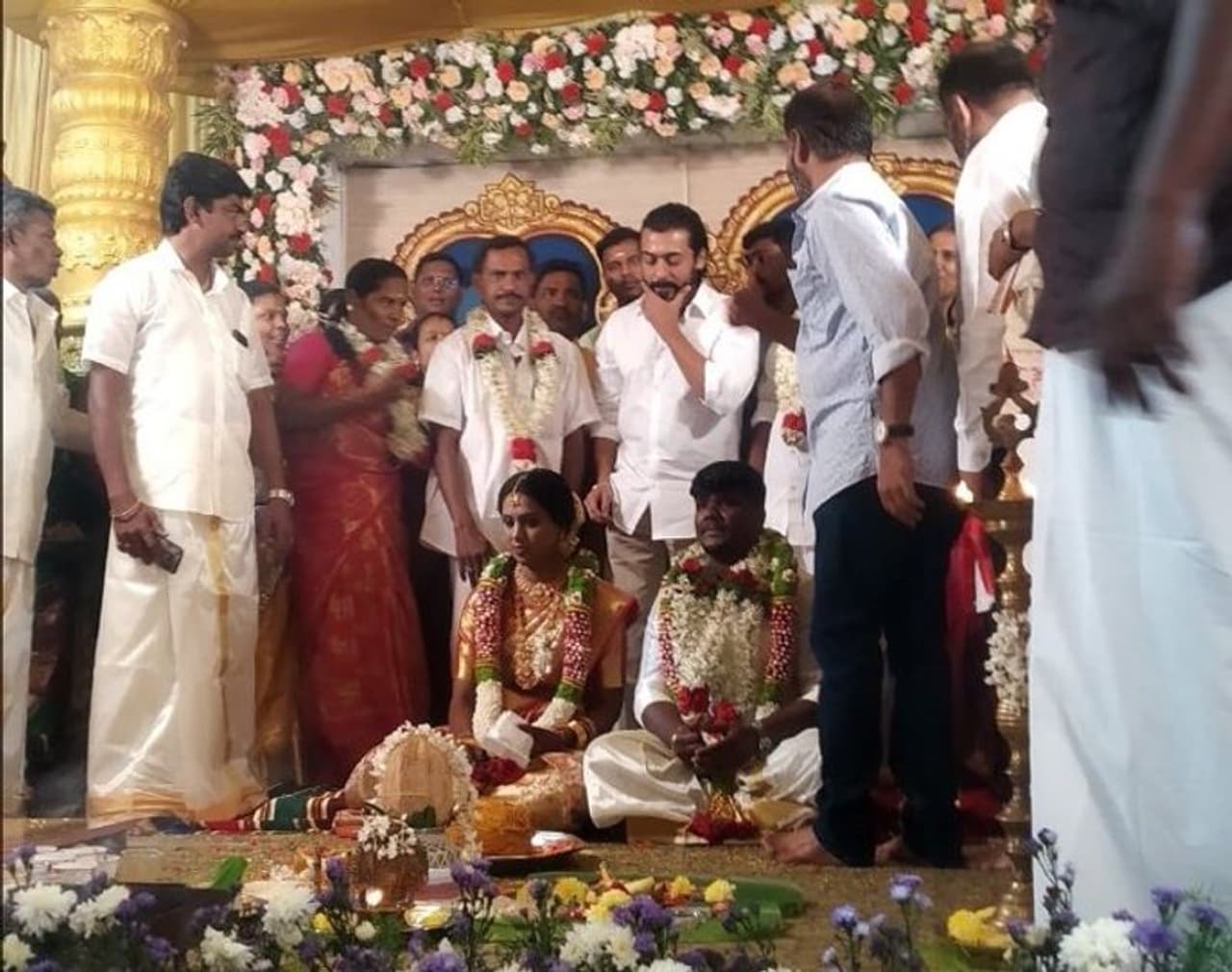 மணமேடையில் உறவினர்களின் ஆசிர்வாதத்தோடு நடிகர் சூர்யா தாலி எடுத்துக் கொடுக்க, அதை மணமகன் மணமகள் கழுத்தில் கட்டும் வீடியோ சோசியல் மீடியாவில் வைரலாகி வருகிறது.