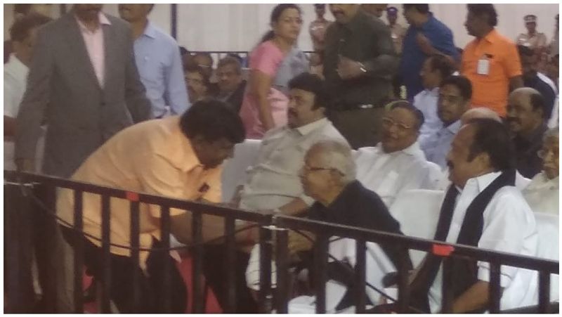 இந்நிலையில் நேற்று கருணாநிதி சிலை திறப்புக்கு திடீரென அவர் விசிட் அடித்ததும் உற்சாக சிரிப்புடன் அவரை வரவேற்றனர். அவரும் வரிசையாக ஒவ்வொரு தலைவராக சந்தித்து கும்பிடு போட்டபடியே போய்க்கொண்டிருந்தார். அப்போது அவரை மடக்கி நிறுத்திய வைகோ, ‘எங்களுக்கு அரசியல்ல இருக்குற எல்லா டென்சன்ல இருந்தும் தினமும் உன் காமெடி தான்யா காப்பாத்துது. நீ நல்லா இருக்கணும்’ என்று வாழ்த்தி அனுப்பி வைத்தார்.