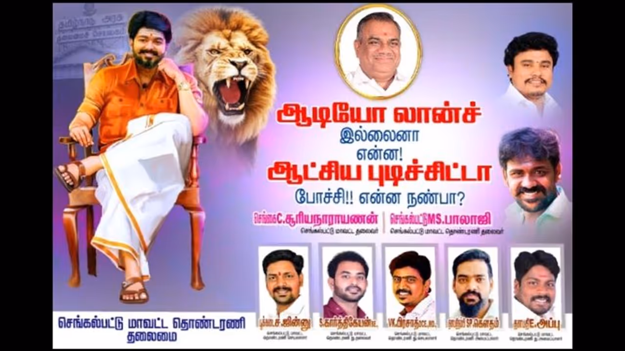 இந்நிலையில், லியோ படத்தின் ஆடியோ லாஞ்ச் ரத்தனாது ரசிகர்கள் மத்தியில் பெரும் கொந்தளிப்பை ஏற்படுத்தி உள்ளது. படம் தயாரிப்பு நிறுவனம் சார்பில் விளக்கம் அளிக்கப்பட்டாலும், அதனை ஏற்க மறுத்து ரசிகர்கள் தங்களது ஆதங்கத்தை வெளிப்படுத்தி வருகின்றனர். அதன் ஒரு பகுதியாக செங்கல்பட்டு மாவட்டத்தில் ஆடியோ லாஞ்ச் ரத்தானால் என்ன, ஆட்யவே புடிச்சிடலாம் என்ற தொணியில் ரசிகர்கள் போஸ்டர் ஒட்டியுள்ளது பரபரப்பை ஏற்படுத்தி உள்ளது.