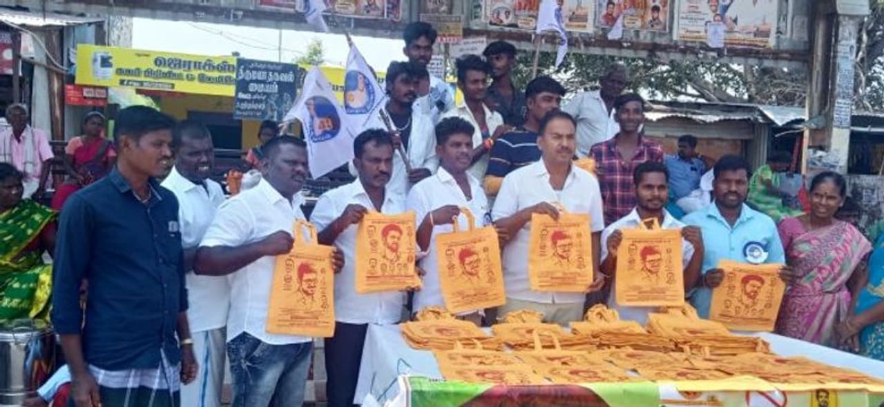 மஞ்சப்பைகளை பிரபலப்படுத்தும் விஜய் ரசிகர்கள்