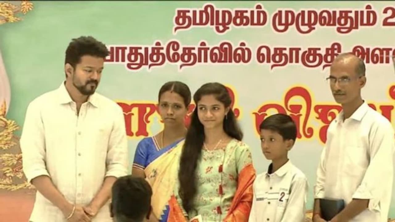 12ம் வகுப்பில் மாநிலத்தில் 600க்கு 600 மதிப்பெண் வாங்கி முதலிடம் பெற்ற நந்தினிக்கு வைர நெக்லஸ் பரிசாக கொடுத்துள்ளார் நடிகர் விஜய்.