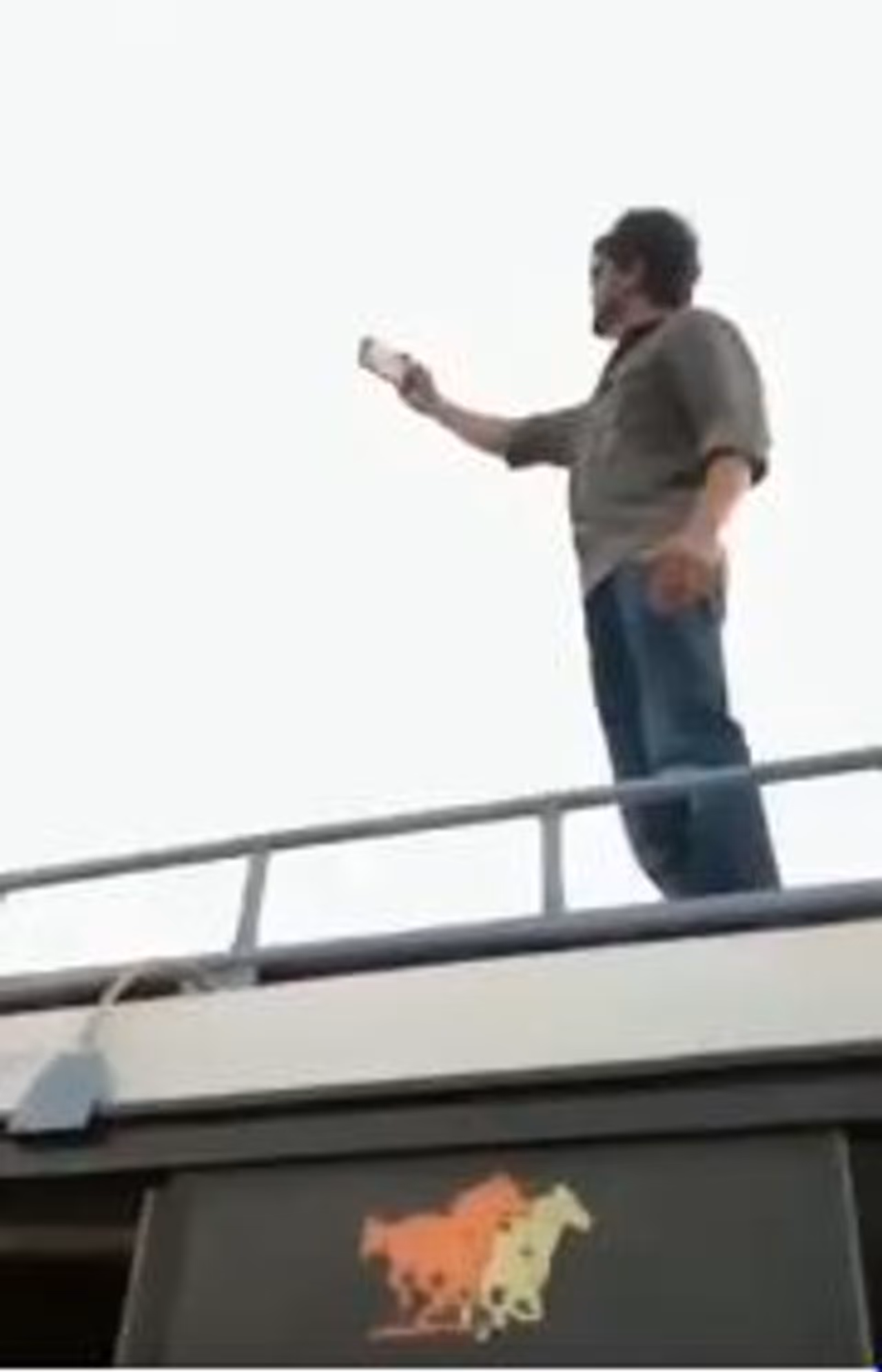 அந்த வகையில், வழக்கம் போல் நேற்று தன்னுடைய ரசிகர்களை சந்திக்க வெளியே வந்த அவர்... அங்கு கூடி இருந்த கூட்டத்தை பார்த்து, திடீர் என படக்குழு நிறுத்தி வைத்திருந்த வேன் ஒன்றின் மீது ரிக்ஸ்க் எடுத்து ஏறி, அணைத்து ரசிகர்களையும் பார்த்தவாறு கை அசைத்தார்.