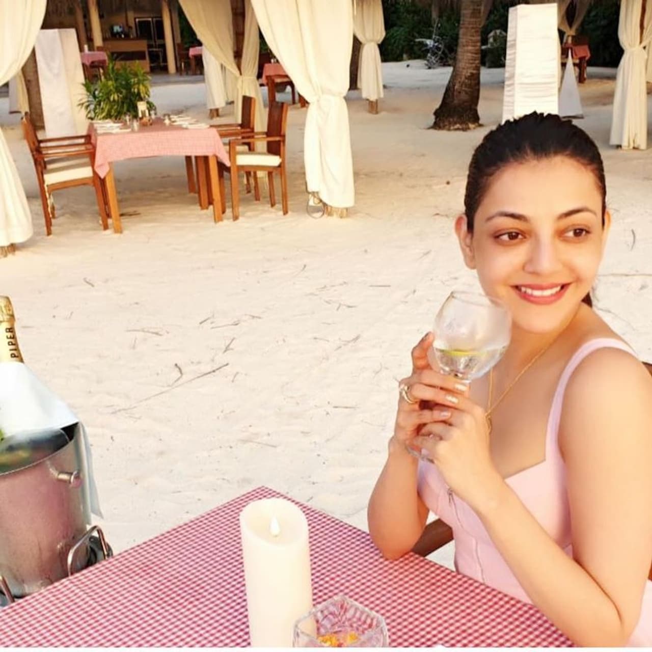 கடற்கரையில் கையில் ஒயின் கிளாஸ் உடன் யாரையோ எதிர்பார்த்து காத்திருப்பது போன்ற காஜல் அகர்வாலின் புகைப்படம் சோசியல் மீடியாவில் செம்ம வைரலாகி வருகிறது.