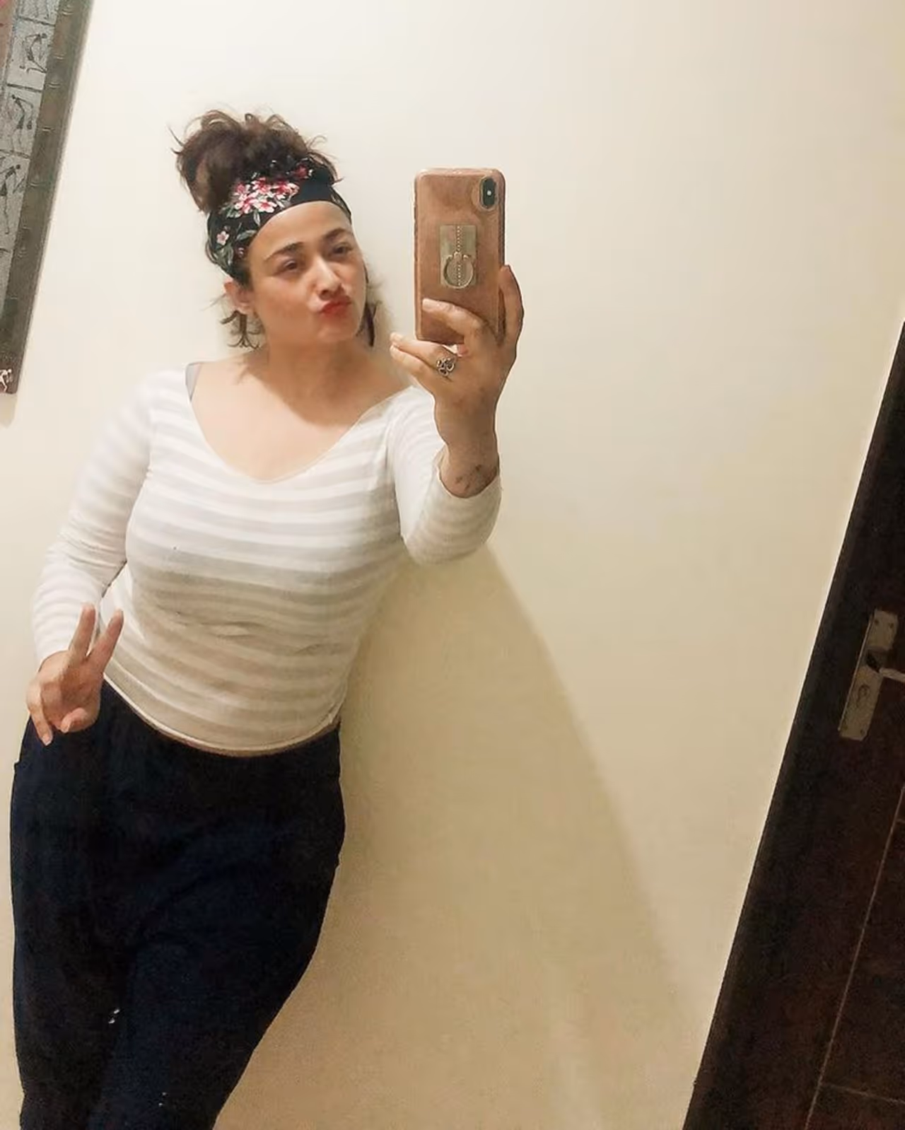 ஊரே அடங்கினாலும் நான் அடங்க மாட்டேன் என்பது போல், டீ ஷர்ட், ஜீன்ஸ் உடையில் டாப் ஆங்கிளில் தினுசு, தினுசாக செல்ஃபி எடுத்து, அதை இன்ஸ்டாகிராமில் பதிவிட்டுள்ளார்.