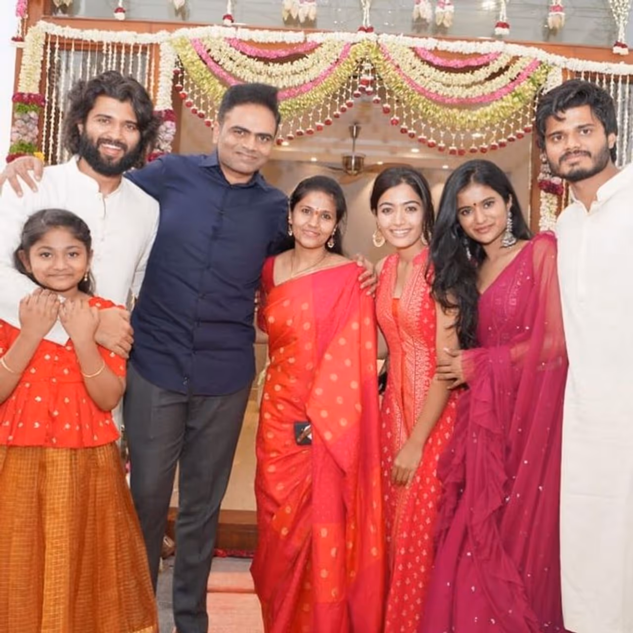 ஆனால் சமீபத்தில் பேட்டி ஒன்றிற்கு பதிலளித்த விஜய் தேவரகொண்டா, "ராஷ்மிகாவை சினிமாவில் மட்டுமே காதலிக்கிறேன். எனக்கு வீட்டில் பெண் தேடி வருகிறார்கள்" எனக்கூறி வதந்திக்கு முற்றுப்புள்ளி வைத்தார். தற்போது விஜய் தேவரகொண்டா குடும்பத்தினருடன் ராஷ்மிகா எடுத்துக் கொண்ட புகைப்படம் ஒன்று சோசியல் மீடியாவில் வைரலாகி வருகிறது.