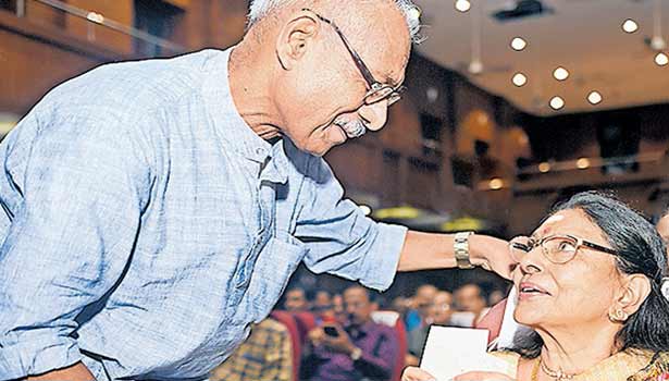 விழாவுக்கு இடையே அவர் நடிகை ஊர்வசி சாரதாவை சந்தித்து பேசினார். அப்போது அவர் தான் எடுத்து வந்திருந்த பண கவரை அவரிடம் தந்தார். 40 ஆண்டுகள் ஆன போதும், கொடுக்க வேண்டிய சம்பள பாக்கியை மறக்காமல் திருப்பி தந்ததில், அவர் காட்டிய நேர்மை, நடிகை ஊர்வசி சாரதாவுக்கு வியப்பை தந்தது. அவர் நெகிழ்ச்சி அடைந்தார். இருவரும் மலரும் நினைவுகளை பகிர்ந்து கொண்டு விடை பெற்றனர்.