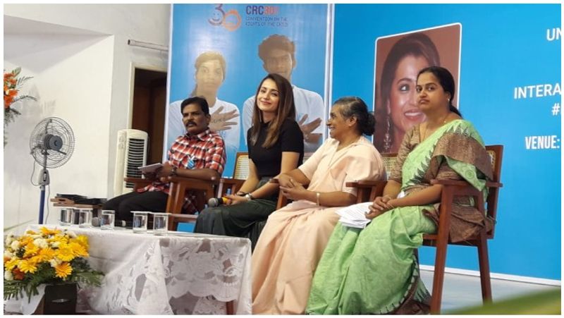 கேள்வி பதில் பகுதியின் நிறைவில் சிறிய உரை ஆற்றிய த்ரிஷா,’ பெண்கள், குழந்தைகளின் அதிகாரத்தை அதிகரிப்போம். இணையதள குற்றங்களில் இருந்தும் குழந்தைகளை பாதுகாப்போம். பாலியல் குற்றங்களால் பாதிக்கப்படும் குழந்தைகளுக்கு ஏற்படும் உளவியல் சிக்கல்களை பிறரால் புரிந்துகொள்ள முடியாது. குழந்தைகளுக்கு எதிரான பாலியல் குற்றங்கள் அதிகரித்து வருகிறது. 2014-ம் ஆண்டு முதல் 2016 வரையில் போக்சோ சட்டத்தின் கீழ் அதிக வழக்குகள் பதிவு செய்யப்பட்டுள்ளன.