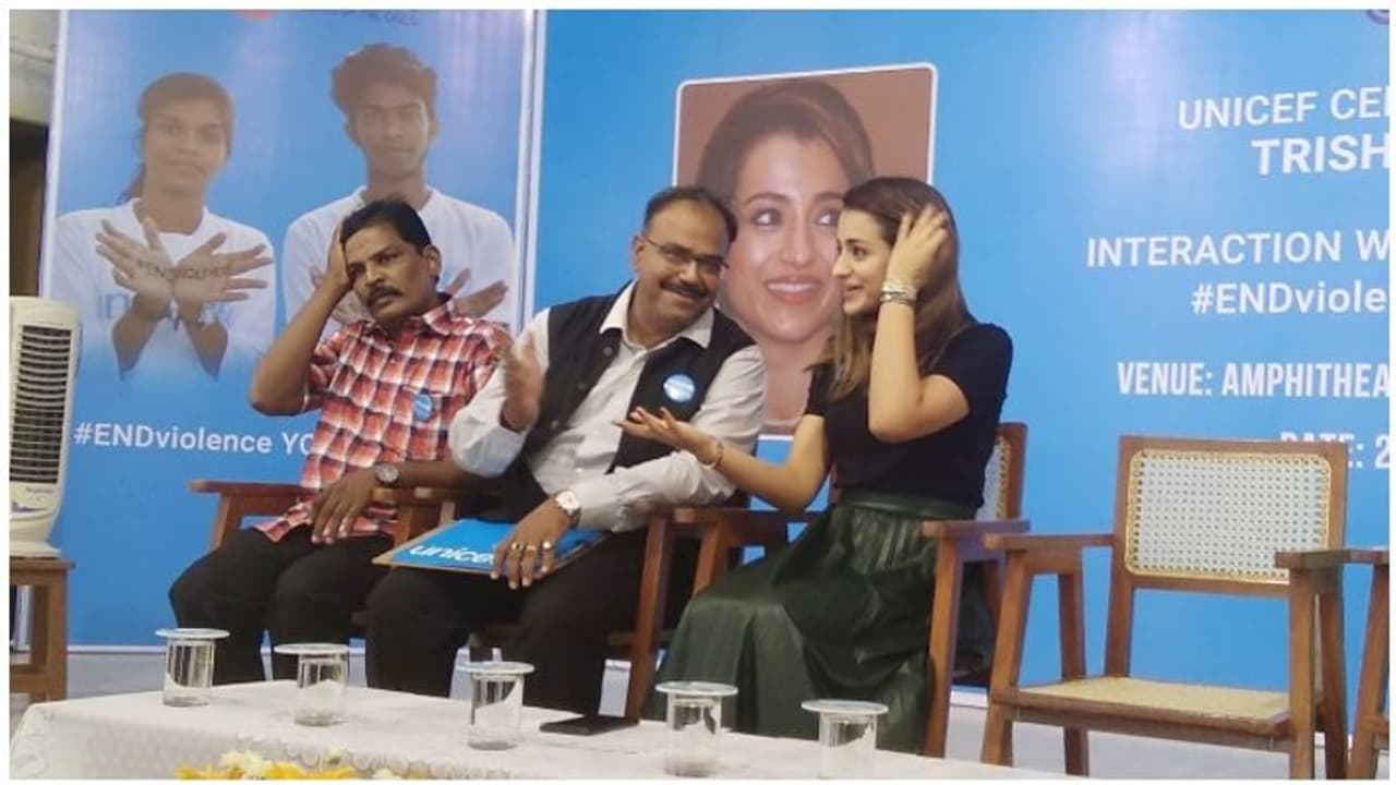 நடிகை த்ரிஷா யுனிசெஃப் அமைப்பின் நல்லெண்ண தூதராகவும் செயல்பட்டு வருகிறார். இன்று சென்னை ஸ்டெல்லா மேரீஸ் மகளிர் கல்லூரியில் யுனிசெப் சார்பில் குழந்தைகள் உரிமைகள் தொடர்பான நிகழ்ச்சியில் கலந்து கொண்டார். சுமார் மூவாயிரம் பேர் வரை கலந்து கொண்ட அந்த நிகழ்ச்சியில் மாணவிகளின் கேள்விகளுக்கு திரிஷா பொறுமையாகப் பதில் அளித்தார்.