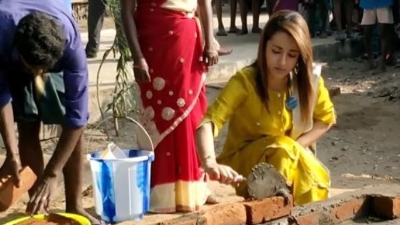 அண்மையில் யுனிசெஃப் அமைப்பின் நல்லெண்ண தூதராக நியமிக்கப்பட்ட நடிகை த்ரிஷா காஞ்சிபுரம் மாவட்டத்தில் கிளீன் இந்தியா திட்டத்தின் கீழ் கழிவறை கட்டும் பணிகளை தொடங்கி வைத்தார்.
