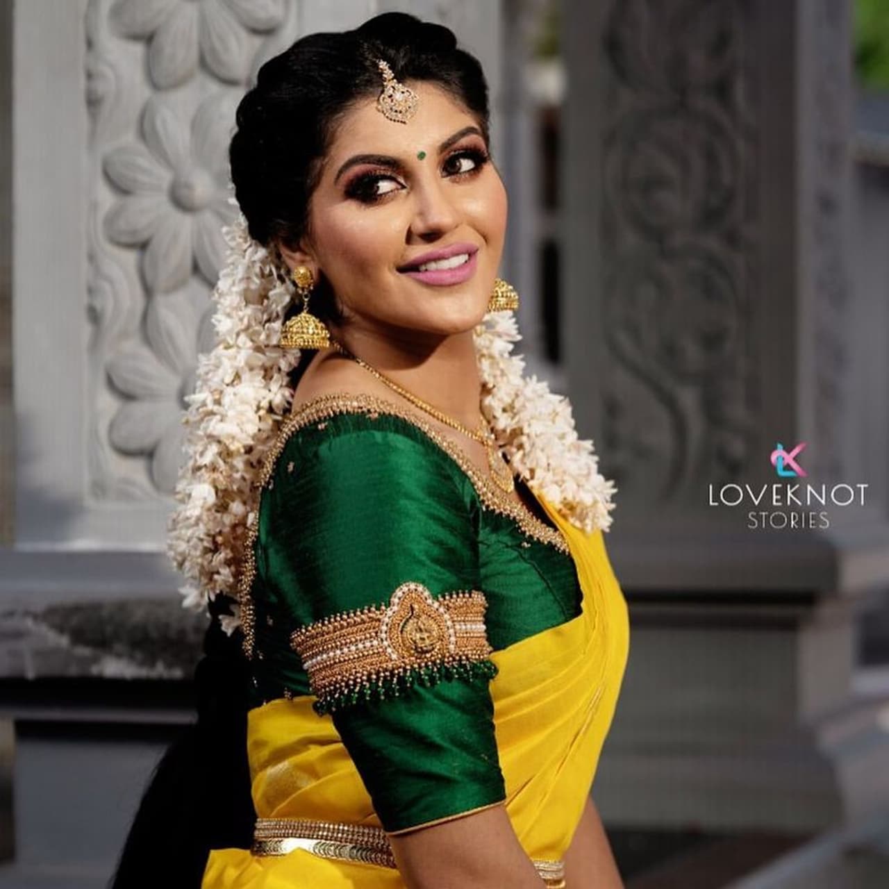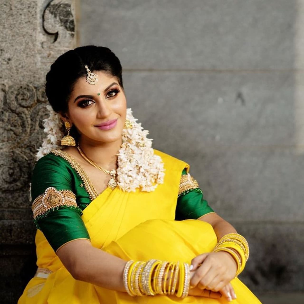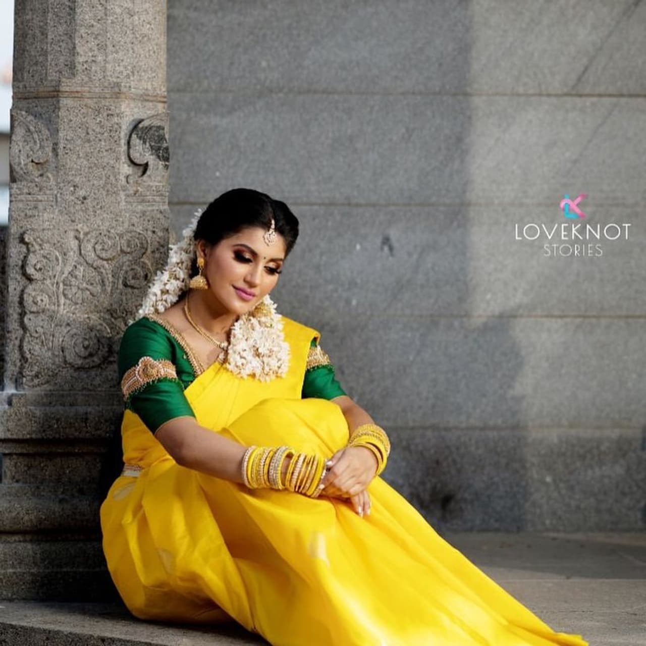 பொங்கலை முன்னிட்டு, பச்சை நிற ஜாக்கெட், மஞ்சள் நிற பட்டுப்புடவையில் தலை நிறைய பூ வைத்து பார்ப்பதற்கு மகாலட்சுமி போல மங்களகரமாக இருக்கும் புகைப்படங்களை வெளியிட்டுள்ளார்.