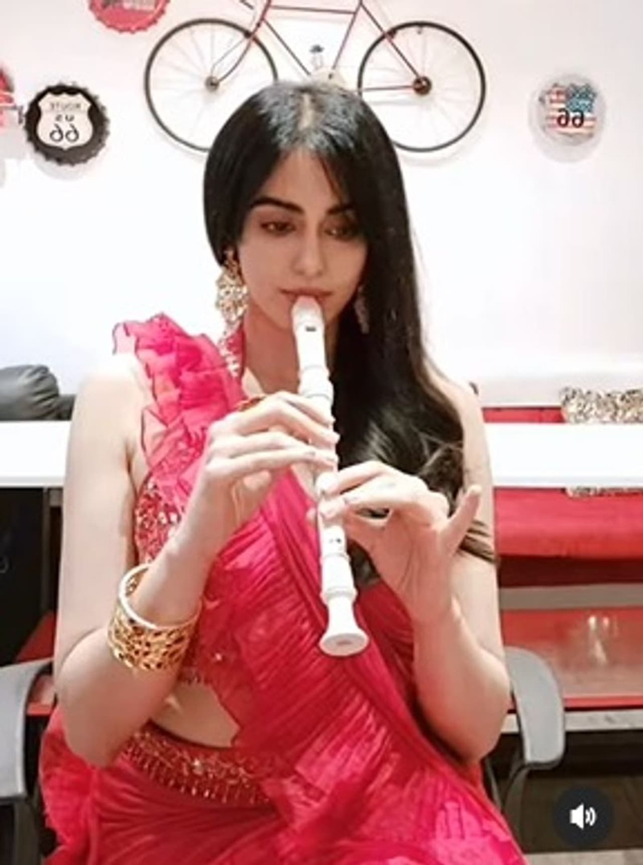 இவர் அவ்வப்போது தனது புகைப்படங்களையும் வீடியோக்களையும் வெளியிட்டு வைரலாவது வழக்கம். அந்த வகையில் ஏற்கனவே அவர் வெளியிட்டிருந்த வீடியோவில் புல்லாங்குழலை லாவகமாக வாசிக்கும் அதா ஷர்மா. ஹிந்தி பாடல் ஒன்றை தனது இசையால் வெளிப்படுத்தி ரசிகர்களை கவர்ந்திருந்தார்.