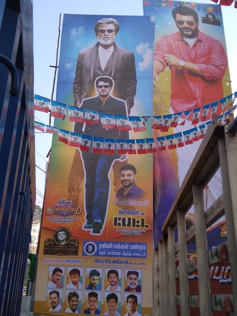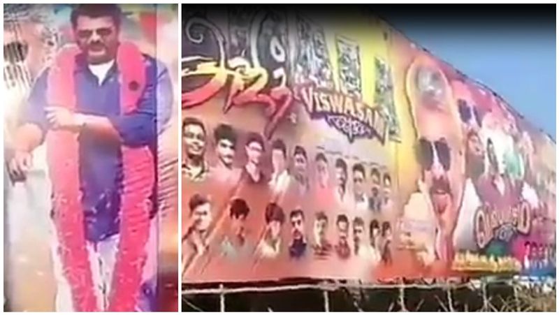 இந்த படத்தை வரவேற்க அஜித் ரசிகர்கள் கடந்த ஒரு வாரத்திற்கு முன்பிருந்தே தயாராகி வருகிறார்கள். குறிப்பாக பார்ப்பவர்களே பிரமிக்கும் வகையில், 4000 சதுர அடியில் பேனர், நடுக்கடலில் பேனர், மிக உயரமான கட்டவுட், மின் விளக்குகளால் அலங்கரிக்கப்பட்ட அஜித் புகைப்படங்கள் என கெத்து காட்டி வருகிறார்கள்.