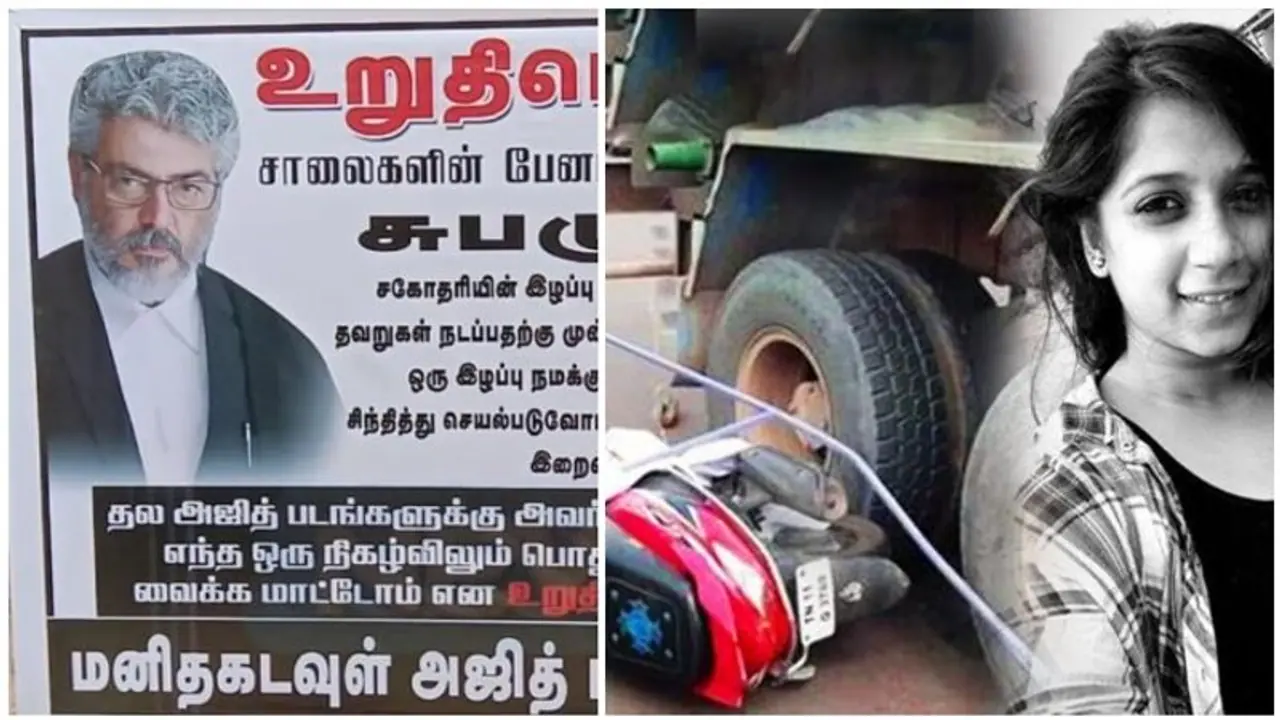 இந்நிலையில் கட்டவுட் விழுந்து, சுபஸ்ரீ என்கிற இளம்பெண் உயிரிழந்த சம்பவம் அஜித் ரசிகர்கள் மத்தியிலும் மிகப்பெரிய மாற்றத்தை கொண்டுவந்துள்ளது. இந்த சம்பவம் குறித்து மதுரை அஜித் ரசிகர்கள் போஸ்டரில் ஒன்றரை ஊர் முழுக்க ஒட்டியுள்ளனர். இதில் அவர்கள் கூறியுள்ளதாவது "சாலைகளின் பேனர் கவிந்து சுபஸ்ரீ என்கிற சகோதரியின் இழப்பு மிகவும் வேதனை அளிக்கிறது. தவறுகள் நடப்பதற்கு முன்னாள் நாம் சிந்தித்து செயல் பட தவறுவதால் ஒரு இழப்பு நமக்கு அறிவுறுத்துகிறது. இனிமேலாவது சிந்தித்து செயல் படுவோம். அந்த சகோதரியின் ஆத்மா சாந்தி அடைய இறைவனை பிரதிக்கிறோம் என தெரிவித்துள்ளனர்.