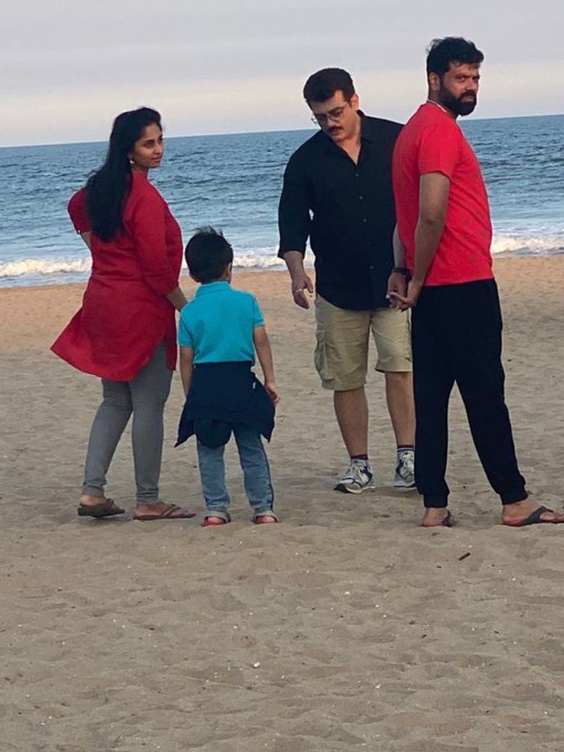 சென்னை கிழக்குக் கடற்கரைச் சாலையில் அமைந்துள்ள பீச் ஒன்றில் தனது மகன் ஆத்விக் மற்றும் காதல் மனைவி ஷாலினியோடு, அடுத்த படத்துக்கான இளமையான தோற்றத்தோடு தல’ அஜீத் செம ஜாலியாக பொழுதுபோக்கும் புகைப்படம் ஒன்று வலைதளங்களில் வைரலாகிவருகிறது.