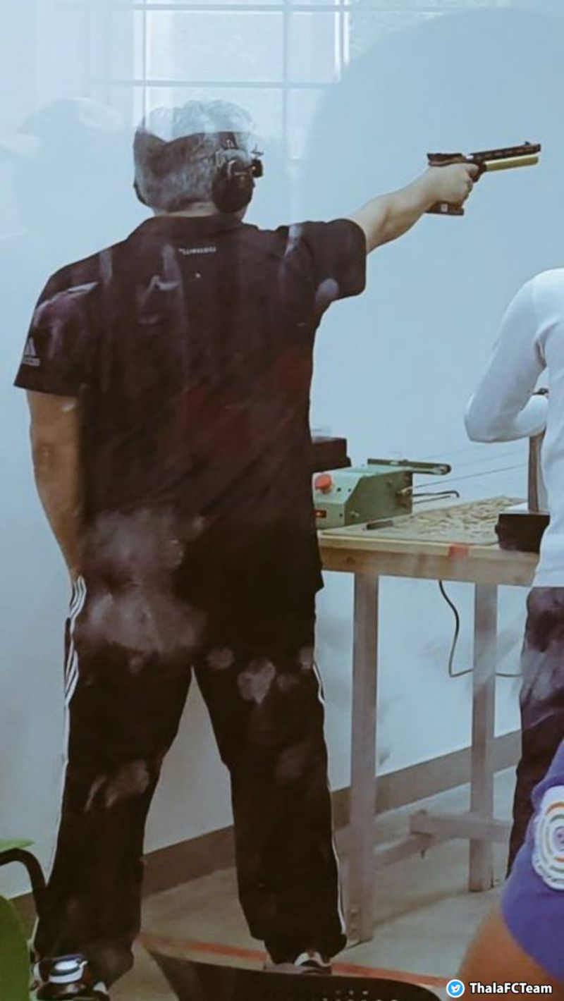 ஆனால், யாரும் எதிர்பாராத நேரத்தில் சமீபத்தில், தமிழ்நாடு துப்பாக்கி சுடுதல் சங்கம் சார்பாக கோவை காலவர் பயிற்சி மையத்தில் நடந்த துப்பாக்கிச்சுடுதல் போட்டியில் தல பங்கேற்று இன்ப அதிர்ச்சி கொடுத்தார்.