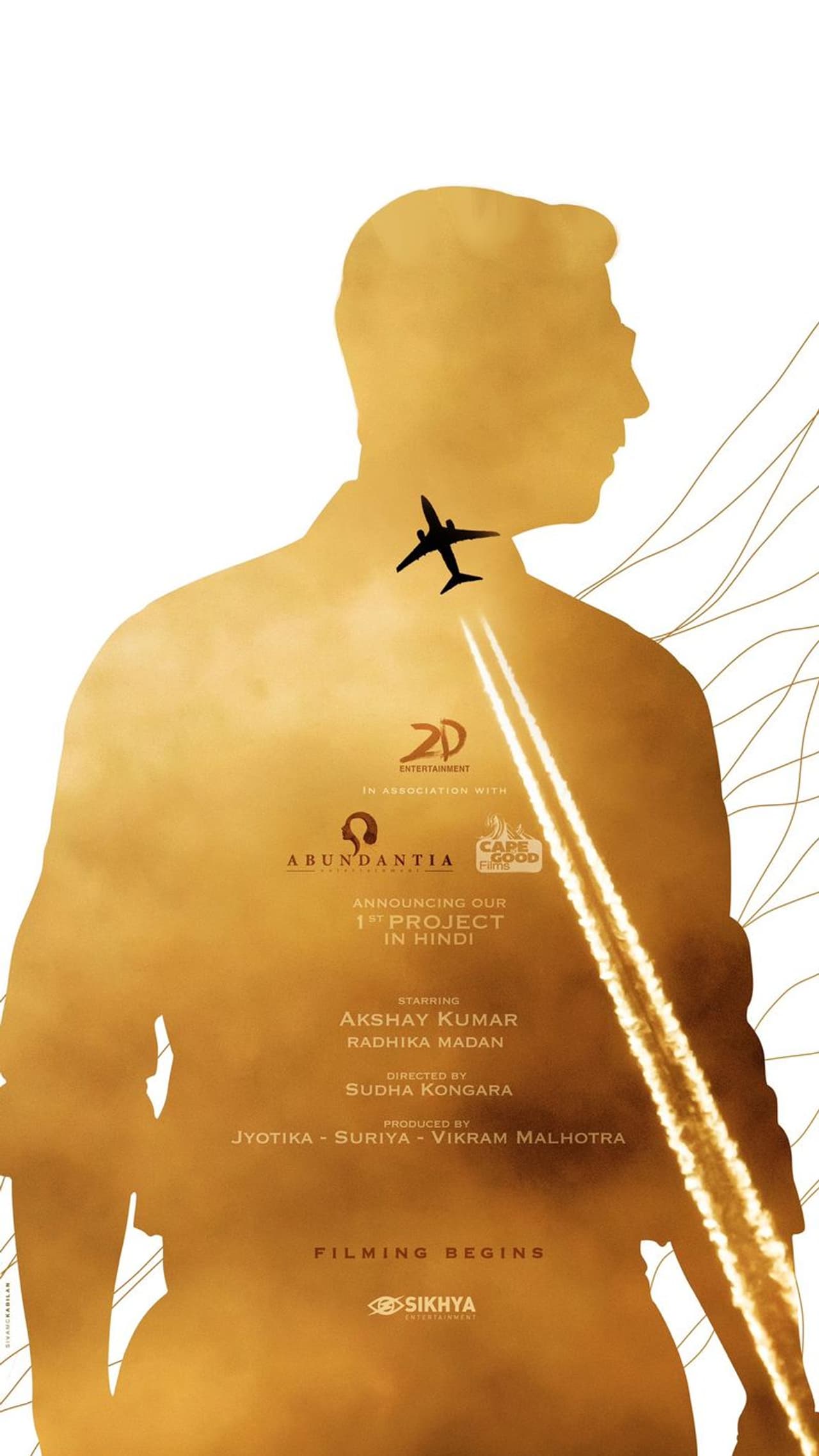சூரரைப்போற்று இந்தி ரீமேக்கில் பாலிவுட் நடிகர் அக்ஷய் குமார் நாயகனாக நடிக்கிறார். அவருக்கு ஜோடியாக ராதிகா மதன் நடிக்கிறார். இப்படத்தை அபுண்டண்டியா நிறுவனத்துடன் இணைந்து சூர்யா - ஜோதிகாவின் 2 டி நிறுவனம் தயாரிக்கிறது. அந்நிறுவனம் தயாரிக்கும் முதல் இந்தி படம் இதுவாகும். இதன்மூலம் பாலிவுட்டில் தயாரிப்பாளராக அறிமுகமாகி உள்ளார் சூர்யா. மேலும் இப்படத்திற்கு ஜிவி பிரகாஷ் இசையமைக்க உள்ளதாகவும் அறிவித்துள்ளனர்.