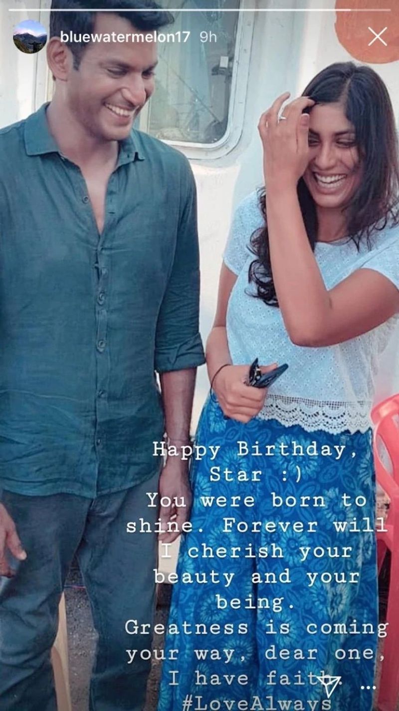 திருமண விவகாரம் பற்றி இருவீட்டாரும் இதுவரை எதுவும் மறுப்போ, அல்லது உண்மைதான் என்றோ என இதுவரை சொல்லவில்லை. விஷால் கூட படங்களில் பிசியாக நடித்து வருகிறார். விஷால், அனிஷா இடையே லவ் வலுவாக இருந்த நிலையில் என்ன ஆச்சு? திருமணம் நின்றுவிட்டதா? அனிஷா ஏன் விஷாலின் புகைப்படங்களை எல்லாம் நீக்கினார்? விடை தெரியாத மர்மமாகவே நீடித்த நிலையில்விஷாலுக்கு பிறந்தநாள் வாழ்த்து சொல்லி ட்விஸ்ட் வைத்துள்ளார் அனிஷா அல்லா ரெட்டி, இன்ஸ்டாகிராம் பக்கத்தில் தான் விஷாலுடன் சேர்ந்து இருக்கும் போட்டோ போட்டு விஷாலுக்கு பிறந்தநாள் வாழ்த்து தெரிவித்துள்ள அவர் பிறந்த நாள் வாழ்த்துக்கள் ஸ்டார். ஜொலிப்பதற்காக பிறந்தவர் நீங்கள் என்று அனிஷா வாழ்த்தியுள்ளார்.