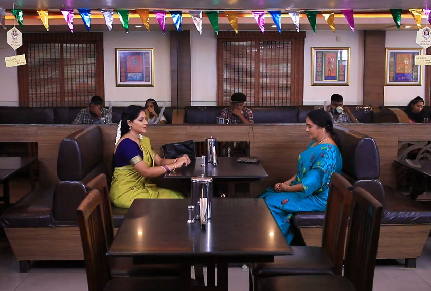 நீங்க ரெண்டு பேரும் மனசு மாறி ஏன் சேர்ந்து இருக்கக் கூடாது? நீ உடனே கூட சொல்ல வேண்டும் என்று இல்லை. யோசித்து நிதானமாக சொல்கிறாயா என்று ஈஸ்வரி கேட்கிறார். அதற்கு ராதிகா இதில் யோசிப்பதற்கு எதுவுமே கிடையாது. இப்போதுதான் என் வாழ்க்கையில் நிம்மதியும், சந்தோஷமும் இருக்கிறது. எக்காரணத்தை கொண்டும் நான் அதை இழக்க விரும்பவில்லை என்று ஈஸ்வரியின் முகத்தில் அறைந்தார் போல் பதிலடி கொடுக்கிறார்.