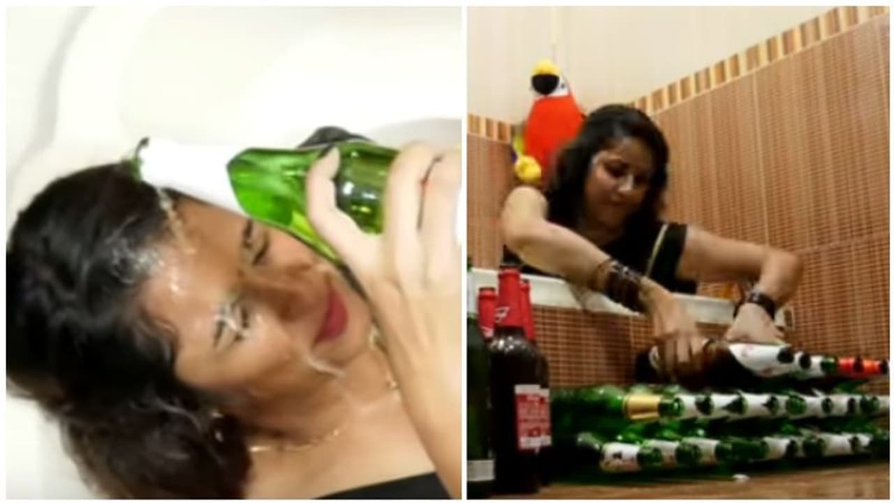 தெலுங்கு நடிகை, ஷ்ரவ்யா ரெட்டி பாத் டப்பில் படுத்துக்கொண்டு, பீரை தலை முதல் கால் வரை ஊற்றி, வெளியிட்டுள்ள வீடியோ பரபரப்பை ஏற்படுத்தியுள்ளது.
