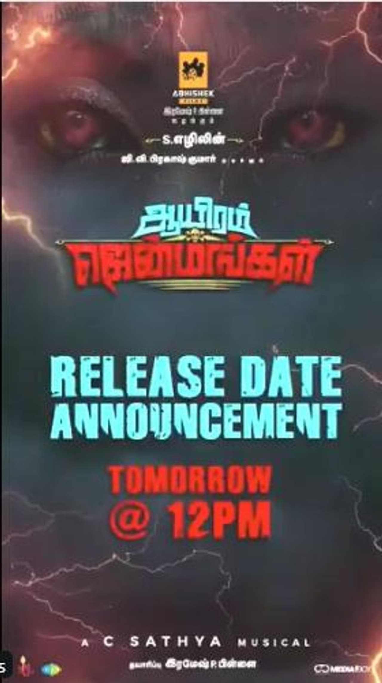 அதன்பின்னர், படம் தொடர்பான எந்தவொரு அப்டேட்டும் வெளியாகாமல் இருந்தது. இந்நிலையி்ல், 'ஆயிரம் ஜென்மங்கள்' படத்தின் ரிலீஸ் தேதி, நாளை (நவம்பர் 18) நண்பகல் 12 மணிக்கு அறிவிக்கப்படும் என தெரிவித்து ரசிகர்களுக்கு சர்ப்ரைஸ் கொடுத்துள்ளது படக்குழு. இதனைத் தொடர்ந்து, டிரைலர், இசை வெளியீடு என 'ஆயிரம் ஜென்மங்கள்' படக்குழுவிடமிருந்து அடுத்தடுத்த அறிவிப்புகளை எதிர்பார்க்கலாம்.