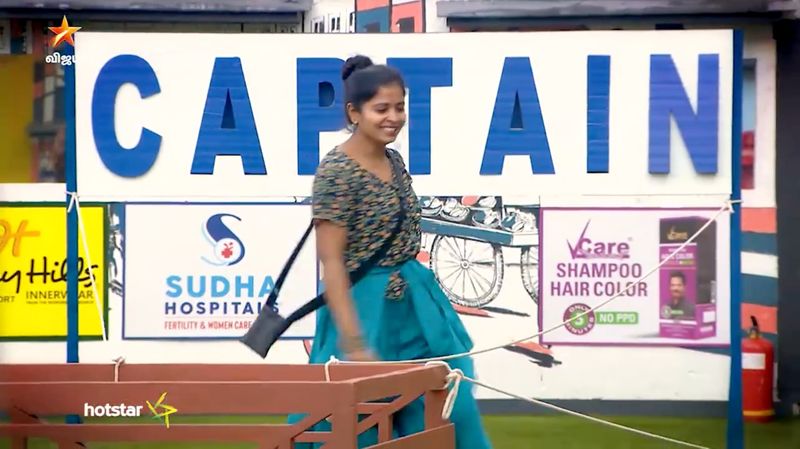 அதாவது கேப்டன் என ஆங்கில வார்த்தைகளை கண்களை காட்டியவாறு, இந்த வார தலைவர் போட்டியில் கலந்து கொண்ட, செரின், மதுமிதா, மற்றும் தர்ஷன் ஆகியோர் அடுக்க வேண்டும். மூவரில் யார் முதலில் குறிப்பிட்ட வார்த்தைகளை ஒரு போர்டில் வைக்கிறார்களோ அவர்கள் தான் இந்த வார தலைவர்.