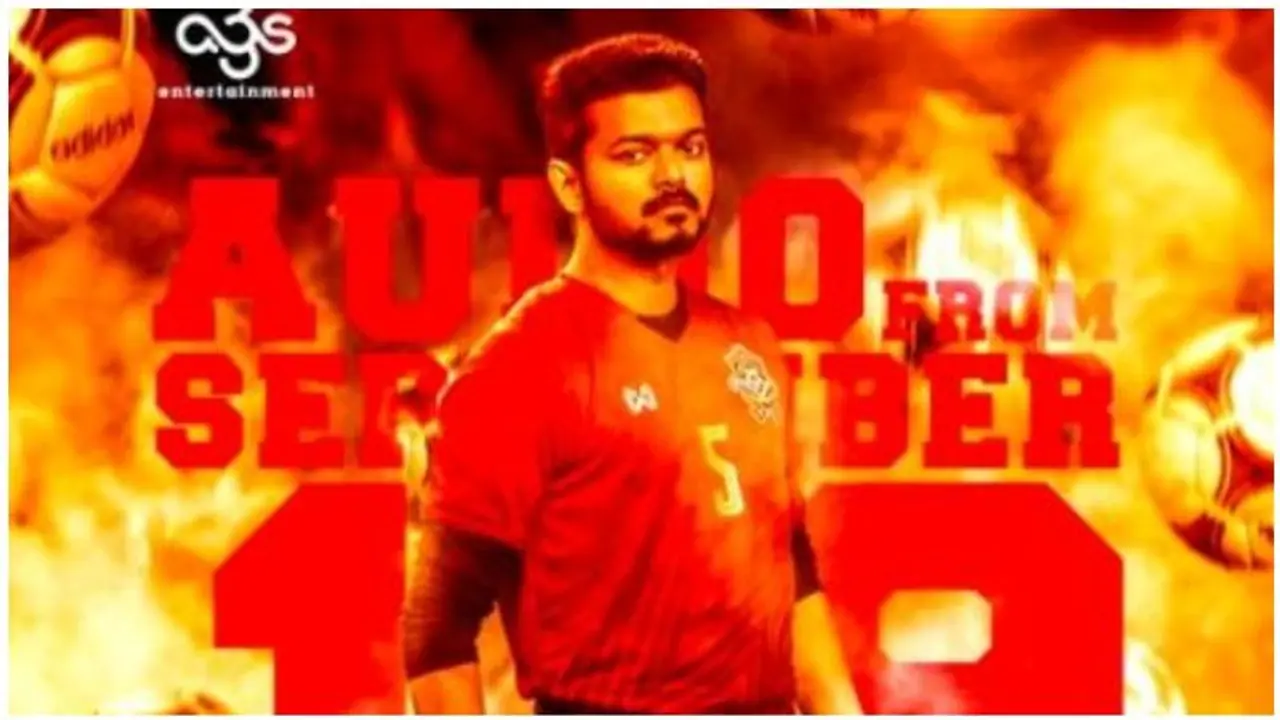 ஆனால் இந்த போஸ்டரில், விஜய்யின் மாஸ் கெட்டப்பை பார்த்து ரசிகர்கள் செம்ம ஹாப்பி. இந்த போஸ்டரில் விஜய் சிவப்பு நிறத்தில், கால் பந்து ஜெர்சியுடன், கயிலி கட்டிக்கொண்டு, கையில் கத்தியுடன் நின்று கொண்டிருக்கிறார். அவருடைய உடையில் 5 என்கிற எண் பொறிக்கப்பட்டுள்ளது. அவரின் பின் பக்கத்தில் நெருப்பு எரியும் பேக் கிரௌண்ட் மற்றும் நிறைய கால் பந்துகள் உள்ளது.