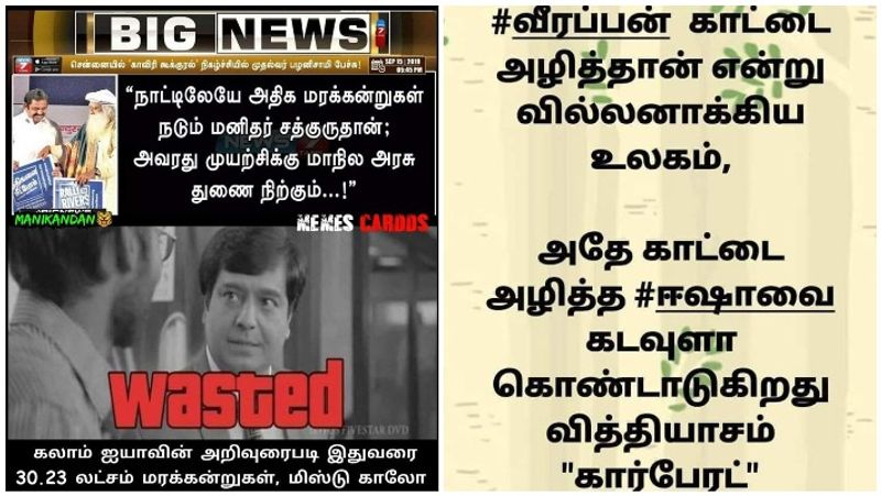 தமிழகம் மற்றும் கர்நாடக மாநிலங்களில் சுமார் 256 கோடி மரக்கன்றுகளை நடும் ஒரு புதுவிதமான யுக்தியுடன் ஜக்கி வாசுதேவ் ‘காவேரி காலிங்’என்ற பெயரில் கூக்குரல் இட்டிருந்தார். இந்த பிரச்சாரத்துக்காக பெருமளவில் நடிகர்,நடிகைகளைத் திரட்டி போஸ் கொடுத்த அவர், அடுத்து தமிழக முதல்வர் உட்பட சகல கட்சி அரசியல்வாதிகளையும் அரவணைத்துக்கொண்டார். அவரை முதல்வர் எடப்பாடி உள்ளிட்டவர்களே ’நம்காலத்தில் வாழும் மாமுனி’ என்று உச்சி முகர்ந்தனர். இந்தக் கூட்டத்தில் கமலும் சேர்ந்துகொண்டு கூத்தடித்தது தனிக்கதை.