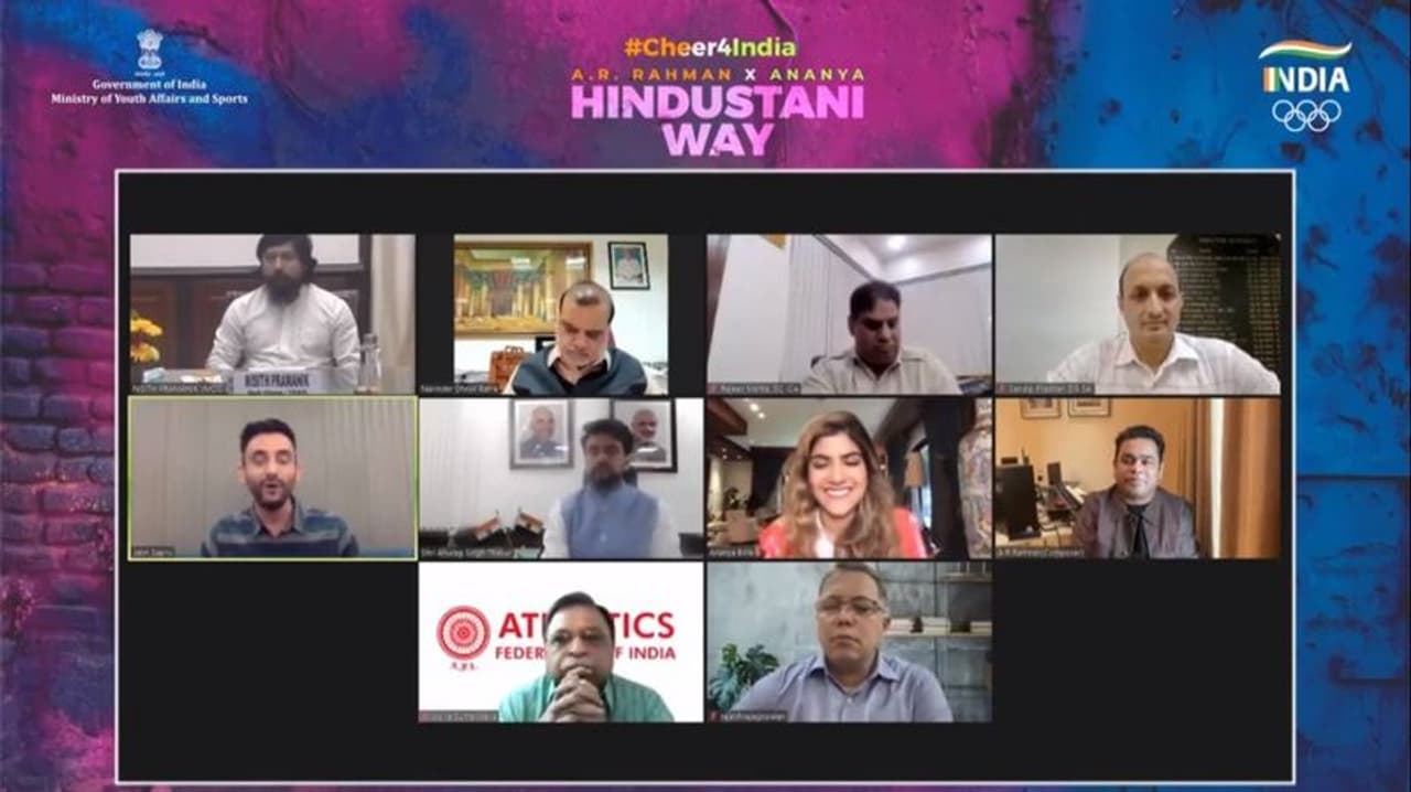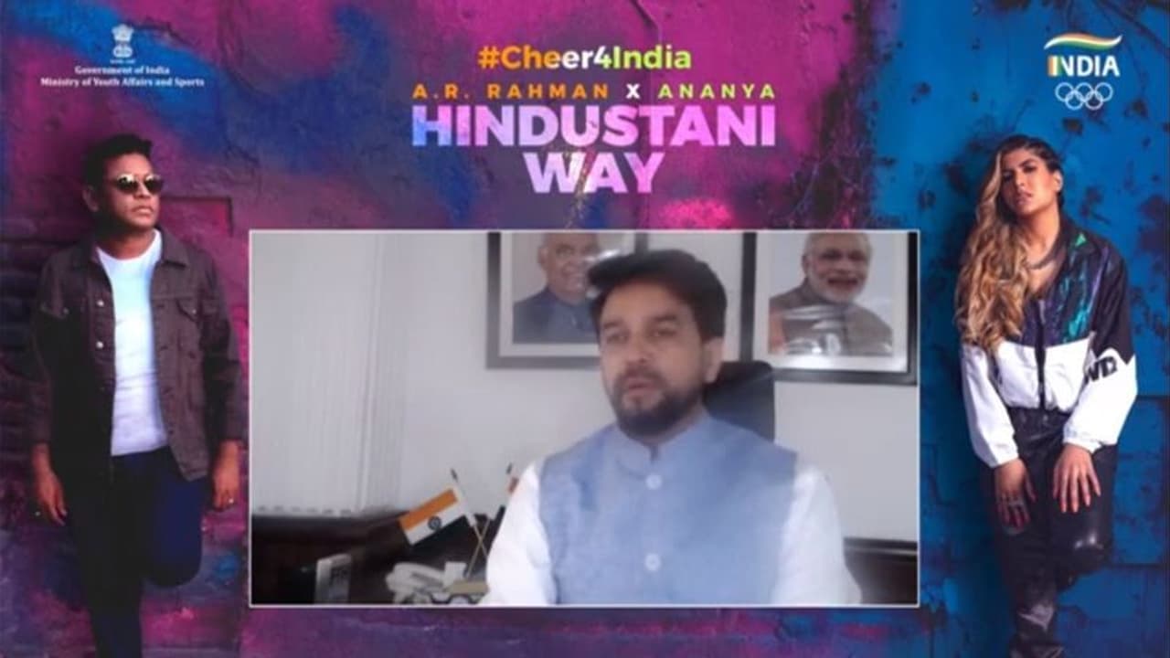 டோக்கியோ ஒலிம்பிக்கிற்கு செல்லும் இந்திய அணியை ஊக்கப்படுத்துவதற்காக ஏ ஆர் ரஹ்மான் இசையமைத்த அதிகாரப்பூர்வ பாடலை இளைஞர் நலன் மற்றும் விளையாட்டு அமைச்சர் அனுராக் தாக்கூர் காணொலி மூலம் வெளியிட்டார்.