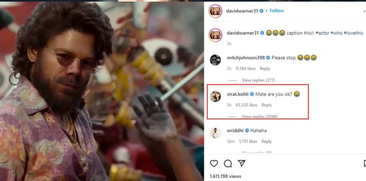 முதல் டெஸ்ட் போட்டியில் வெற்றிபெற்ற மகிழ்ச்சியில், தற்போது புஷ்பா (pushpa) பட பாடல் வீடியோவில் அல்லு அர்ஜுனுக்கு (allu arjun) பதிலாக தன்னுடைய முகத்தை பேஸ் ஆப் மூலம் வைத்து அவர் வெளியிட்டுள்ள வீடியோ சமூக வலைதளங்களில் வைரலாகி வருகிறது. இந்த வீடியோவை பார்த்து ஷாக்கான ரியாக்ஷனுடன் அல்லு அர்ஜுன் செய்ய, இந்திய டெஸ்ட் அணி கேப்டன் விராட் கோலியோ (virat kohli), கிண்டலடித்து கமெண்ட் செய்துள்ளார்.