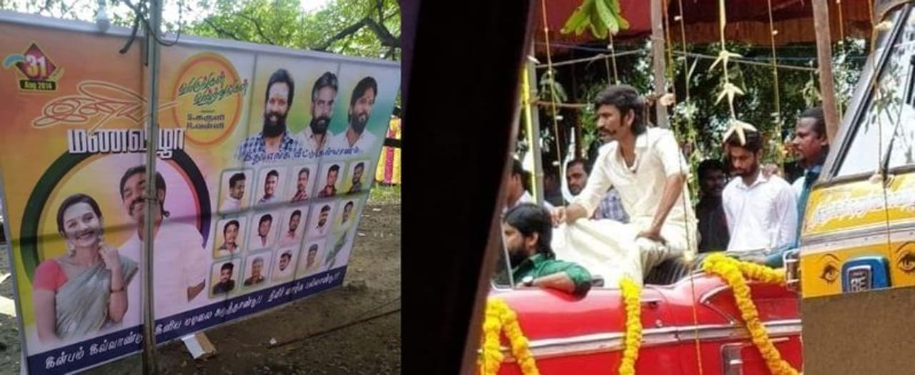 தனுஷ் திருமண பாடல் காட்சிகளை படக்குழு ஷூட் செய்துள்ளது. இதற்காக செட்டில் வைக்கப்பட்டிருந்த தனுஷ், சஞ்சனா திருமண பேனர்கள் சோசியல் மீடியாவில் வைரலாகி வருகின்றன.