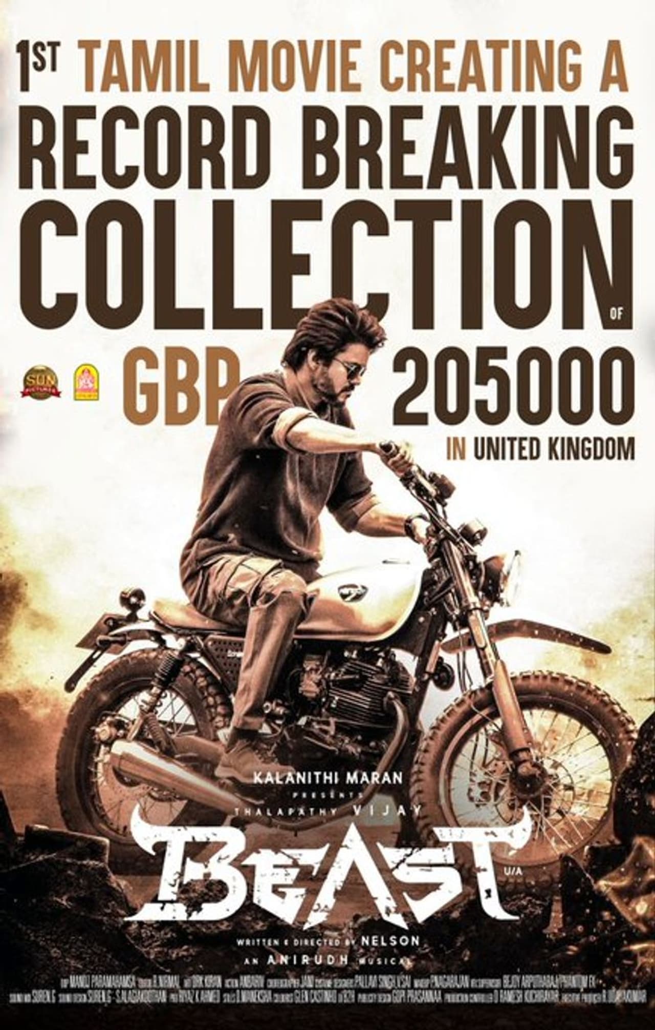 பான் இந்தியா படமாக தயாராகி உள்ள பீஸ்ட்திரைப்படத்தின் பாடல்கள் மற்றும் பின்னணி இசையை அனிருத் கவனிக்க, பிரபல ஒளிப்பதிவாளர் மனோஜ் பரமஹம்சா இப்படத்திற்கு ஒளிப்பதிவு செய்துள்ளார். இருப்பினும், இந்த படத்திற்கு போதிய வரவேற்பு கிடைக்க வில்லை. நெகடிவ் விமர்சனங்களை பெற்றதால் வசூல் விவரம் பாதிக்கப்பட்டது. இதனை தொடர்ந்து வெளிவந்த, கேஜிஎப் 2 படம் தற்போது வசூல் சாதனைகள் படைத்து வருகிறது.