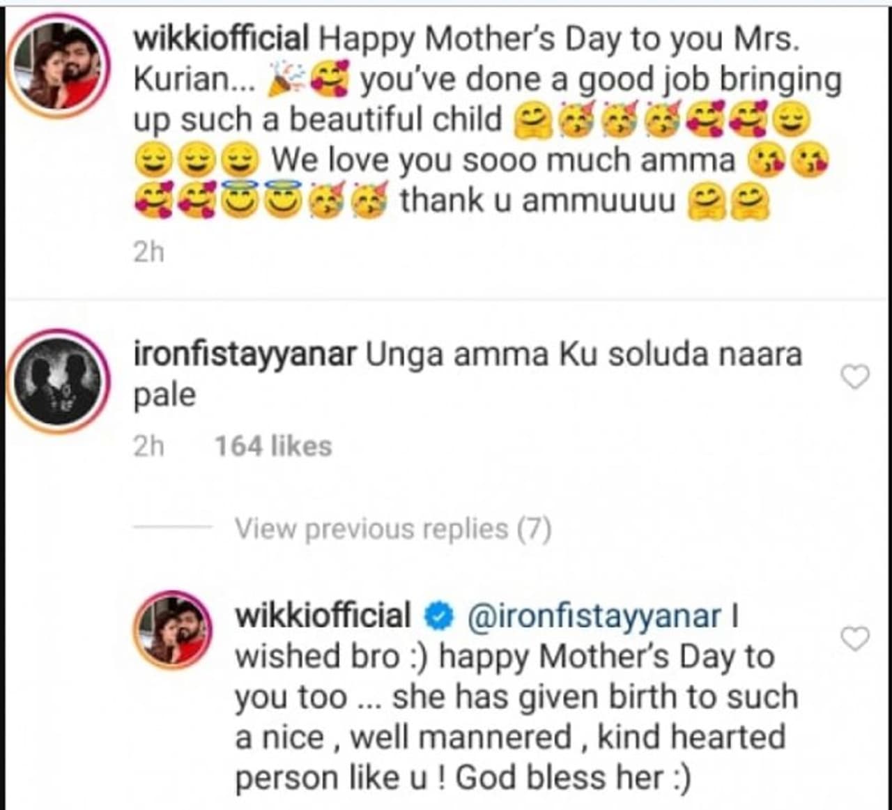 அதில், உங்க அம்மாவிற்கும் அன்னையர் தின வாழ்த்துக்கள் :)... உங்களைப் போன்ற நன்னடத்தை, கனிவான குணம் கொண்ட நல்ல மனிதரை பெற்றதற்காக வாழ்த்துகிறேன் என்று கமெண்ட் செய்துள்ளார். மிக மோசமான கமெண்டிற்கு கூட எவ்வித கோபமும், பதற்றமும் இல்லாமல் தன்னை விமர்சித்தவரே தலை குனியும் அளவிற்கு பதிலளித்துள்ளார் விக்னேஷ் சிவன்.