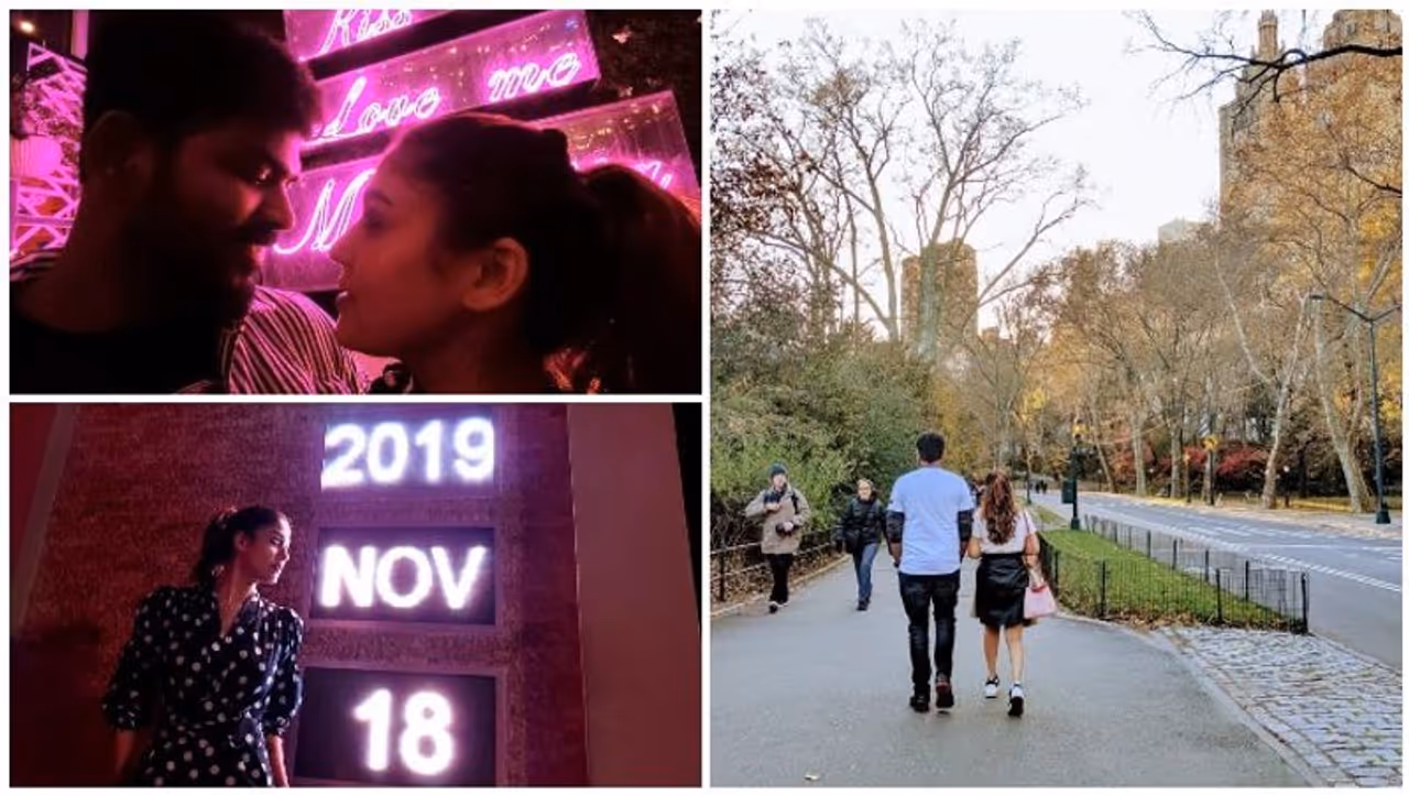 காதலி நயன்தாராவின் 35 வது பிறந்தநாளை நியூயார்க் இரவில் வைத்துக்கொண்டாடியுள்ள விக்னேஷ் சிவன் தனது இன்ஸ்டாகிராம் பக்கத்தில் மானே தேனே பொன்மானேவுக்காக அடுத்த ஒரு நடிகையாக நீ இன்னும் மேலும் மேலும் சாதிக்கவேண்டும் என்று வாழ்த்தியுள்ளதால் அவர்கள் இப்போதைக்கு திருமணம் செய்துகொள்ளமாட்டார்கள் என்று கமெண்ட் அடிக்க ஆரம்பித்திருக்கிறார்கள்.