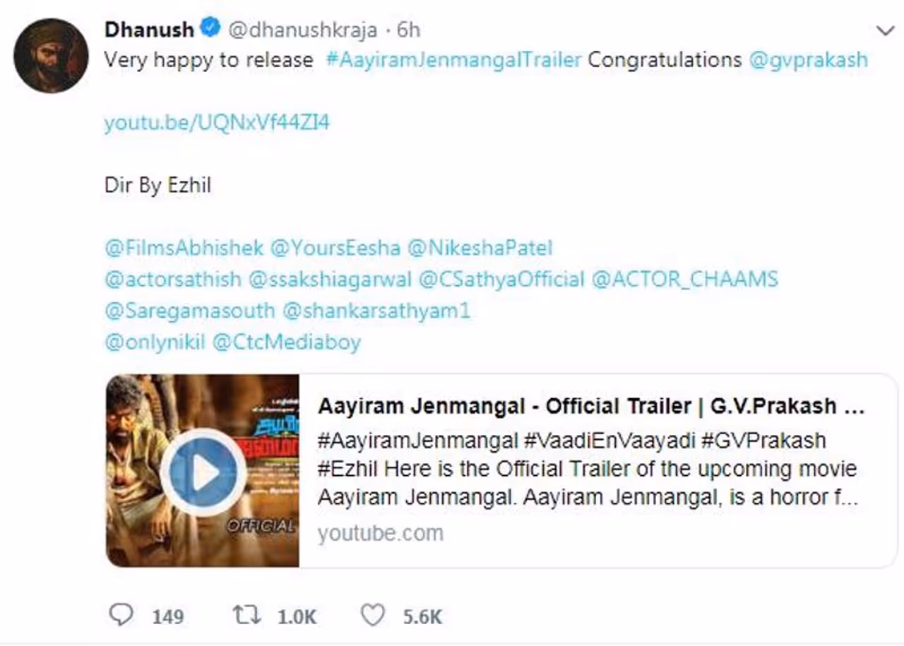 இதற்காக, அவருக்கு ஜி.வி. பிரகாஷ் தனது ட்விட்டர் பக்கத்தில் நன்றி தெரிவித்துள்ளார்.