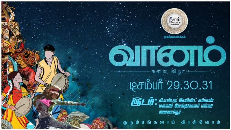 டிசம்பர் 29, 30, 31 ஆகிய 3 நாள்களும் காலை 10 மணி முதல் இரவு 10 மணி வரை பல்வேறுபட்ட கலை நிகழ்வுகள் நடக்கும் வானம் திருவிழாவில் கலந்துகொள்ள அனுமதிக்கட்டணம் எதுவும் கிடையாது. அனைவருக்கும் அனுமதி இலவசம்.