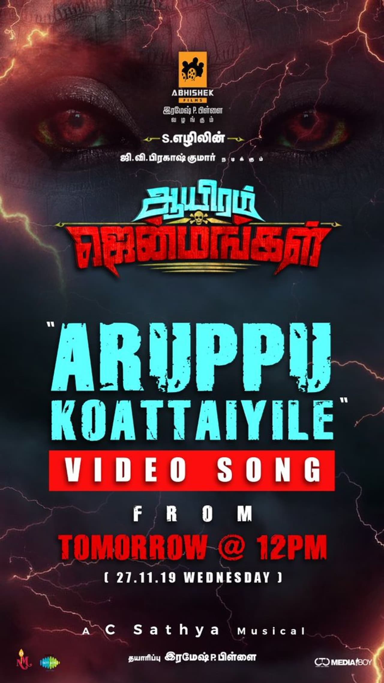 இதனையடுத்து, படத்தை விளம்பரப்படும் பணிகளில் படக்குழு தீவிரமாக இறங்கியுள்ளது. ஏற்கெனவே, இந்தப் படத்தின் இரு பாடல்கள் வெளியாகி வரவேற்பை பெற்ற நிலையில், இசை வெளியீடு குறித்த அறிவிப்பை எதிர்பார்த்து ரசிகர்கள் காத்திருந்தனர். அவர்களுக்கு உற்சாகத்தை தரும் வகையில், 'ஆயிரம் ஜென்மங்கள்' படத்தின் இசை நாளை (நவ. 27) வெளியாகும் என அறிவிக்கப்பட்டுள்ளது.