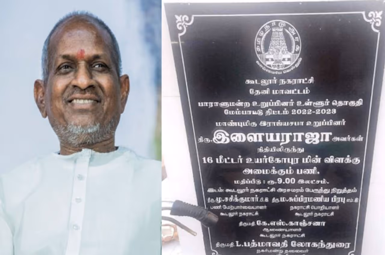 இந்நிலையில், மின்விளக்கு வைக்கப்பட்டது குறித்த கல்வெட்டின் புகைப்படம் சமூக வலைத்தளங்களில் வெளியாகி வைரலாகியுள்ளது. எம்.பி. பதவியை நல்ல முறையில் பயன்படுத்தி மக்களுக்கு பயனுள்ள வசதியை ஏற்படுத்திக் கொடுத்த இளையராஜாவுக்கு பாராட்டுகள் குவிந்து வருகின்றன.