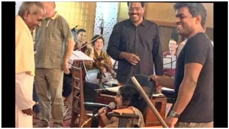 அப்புகைப்படத்தில் ராஜா பாடப்போகும் ஒரு பாடல் குறித்து அவர் தனது பேத்தி ஜியாவிடம் ஏதோ சந்தேகம் கேட்பது போலவும், அதைப் பெருமை பொங்க ராஜா பார்ப்பது போலவும் உள்ள புகைப்படம் தற்போது வலைதளங்களில் வைரலாகிவருகிறது. இப்புகைப்படத்தை யுவன் தனது ட்விட்டர் பக்கத்தில் பகிர்ந்துள்ளார்.