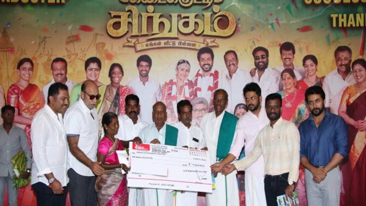 இந்த விழாவில் பேசிய நடிகர் சூர்யா :- “ எல்லா புகழும் இறைவனுக்கே “ என கூறி ஏ.ஆர்.ரகுமான் ஸ்டைலில் தன்னுடைய பேச்சை துவங்கினார். பின் இந்த படத்தின் இயக்குனர் பற்றி பேசிய சூர்யா இயக்குநர் பாண்டிராஜை தவிர இப்படத்தை யாராலும் சிறப்பாக எடுத்து வெற்றி படமாக இதை கொடுத்திருக்க முடியாது. பிளாக் பஸ்டர் மேடையை நான் பார்த்ததே வெகுநாளாகிவிட்டது. இந்த மேடையில் நின்று பேசுவது மகிழ்ச்சியாக உள்ளது. இந்த படம் சினிமாவின் மூலம் கண்டிப்பாக நல்ல செய்திகள் பலவற்றை சொல்ல முடியும் என்று நிருபித்துள்ளது. இங்கே நமது தமிழ் நாட்டில் நிறைய டாக்டர்கள் , என்ஜினியர்கள் என்று பலர் உள்ளனர். ஆனால் ஒரு விவசாயியை கொண்டு வருவது கடினமான ஓர் விஷயமாக உள்ளது. இந்த படம் வெற்றி பெற்றதுக்கு முக்கியமான காரணம் ஒருவர் மீது இன்னொருவர் வைத்திருந்த நம்பிக்கை மற்றும் அன்பு தான். எங்களை விட அதிகமாக வேர்வை சிந்துபவர்கள் உழவர்கள் தான். அதனால் தான் ரூபாய் ஒரு கோடியை அவர்களுக்கு வழங்கியுள்ளோம். எல்லோரும் கமர்ஷியலாக படமெடுக்கட்டும் ஆனால் நாங்கள் 2டி மூலம் மக்களுக்கு கருத்து சொல்லும் value based entertainment படங்களை தான் எடுப்போம் என்றார் சூர்யா.