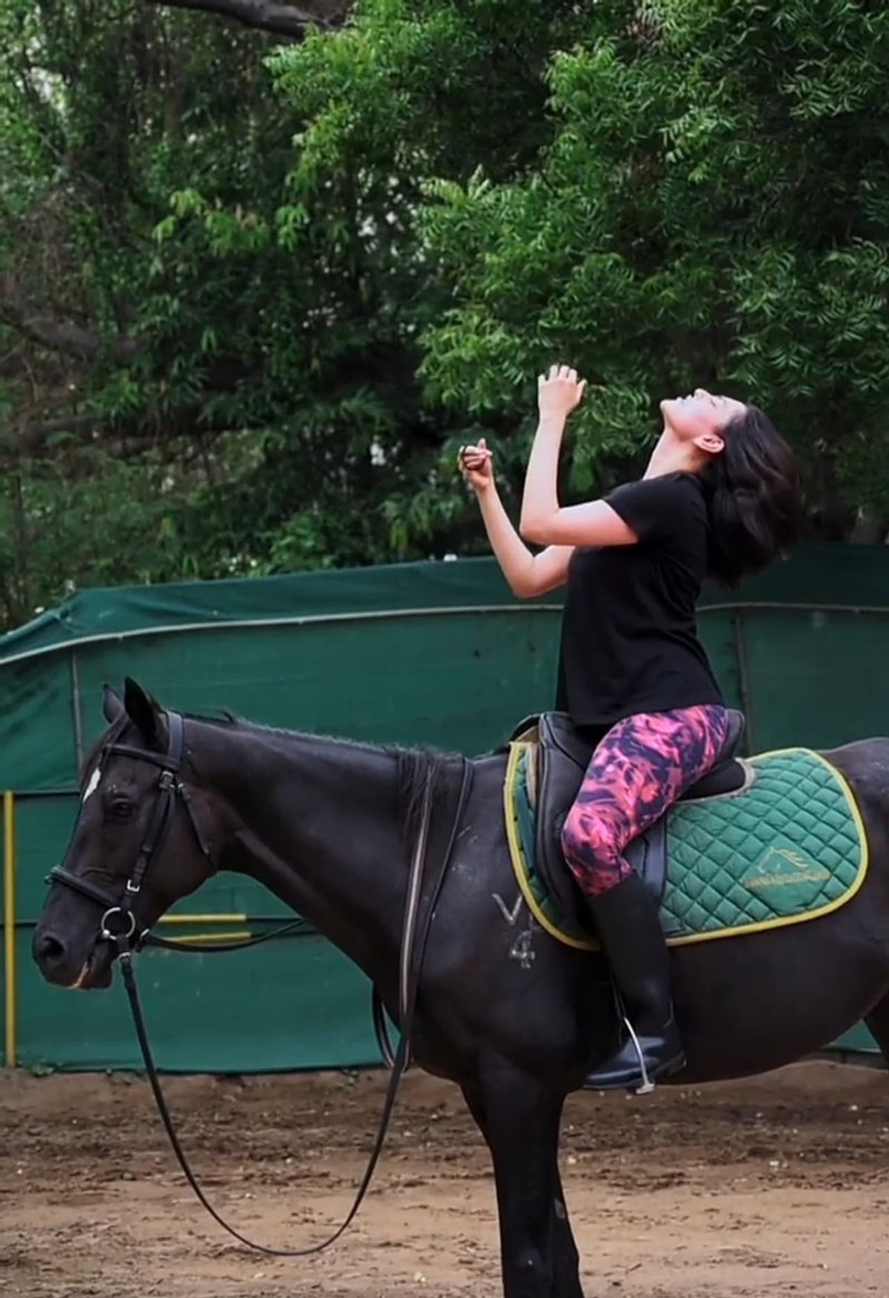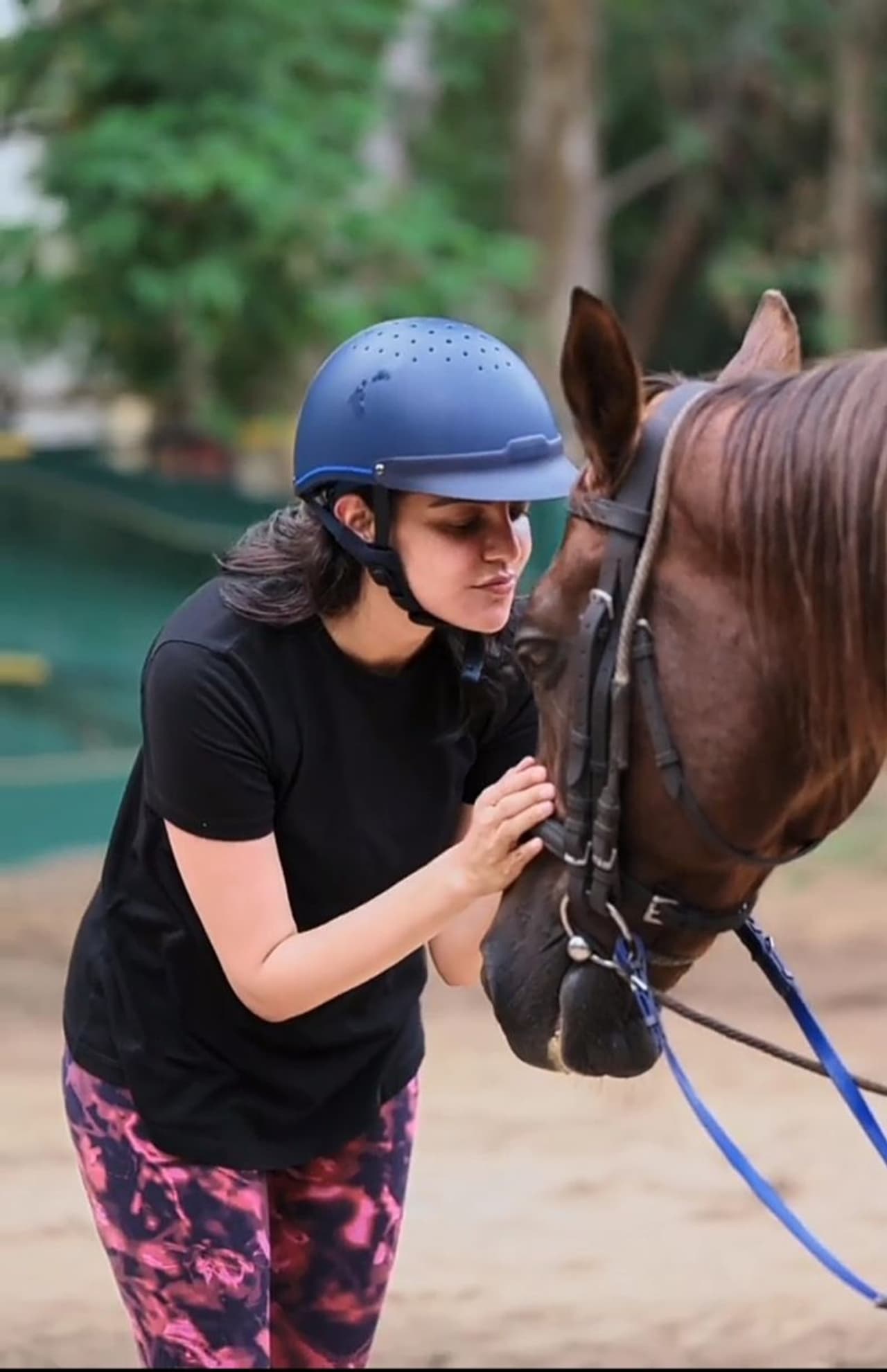 மேலும் குழந்தை பிறந்த பின்னர், இந்த படத்திற்காக ரிஸ்க் எடுத்து, தில்லாக குதிரை ஓட்டும் பயிற்சி மேற்கொண்டு வருகிறார். தற்போது இது குறித்த வீடியோ ஒன்று தான் சமூக வலைத்தளத்தில் வெளியாகி வைரலாக பார்க்கப்பட்டு வருகிறது. இந்த வீடியோவை வெளியிட்டு, தன்னுடைய இன்ஸ்டாங்க்ராமில் காஜல் கூறியிருப்பதாவது: குழந்தை பிறந்த பின்பு உடற்பயிற்சி செய்து மீண்டும் பழைய உடல் எடையை கொண்டு வருவது என்பது மிகப்பெரிய சவாலான காரியம். நீண்ட நேரம் ஜிம்மில் சென்று உடற்பயிற்சி செய்தாலும் உடல் எடை குறைப்பது மிகவும் கடினம். குறிப்பாக தற்காப்புக்கலை பயிற்சி மேற்கொள்ளும் போது தனது உடல் ஒத்துழைக்கவில்லை என்று காஜல் அகர்வால் தெரிவித்து இருந்தார்.