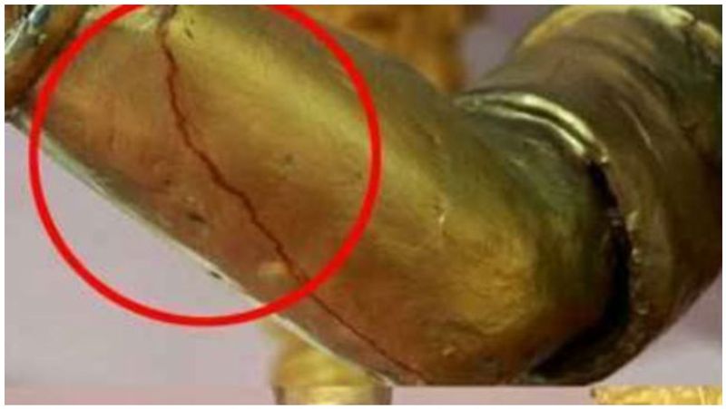 கடந்தாண்டு கேரளாவில் ஏற்பட்ட கடும் வெள்ளத்தால், உள்ளிருக்கும் அந்த ராடுகள் துருப்பிடித்துள்ளன. தற்போது வெளியில் இருக்கும் பைபர் வெயிலுக்கு உருக ஆரம்பித்துள்ளது. இதனால், துருவும் அதனுடன் சேர்ந்து சிவப்பு நிறத்தில் திரவம் வெளிவந்துள்ளது' எனத் தெரிவித்துள்ளார்.