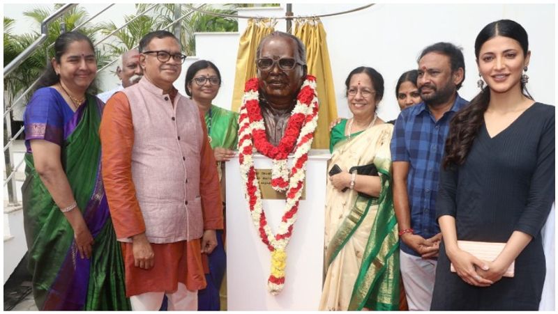 மூன்று நாள் கொண்டாட்டங்களின் முதல் நாளாக நடிகர் கமல்ஹாசன் சகோதரர் சாருஹாசனுடன் சேர்ந்து தந்தை சீனிவாசனின் சிலையை, பரமகுடியில் நேற்று திறந்து வைத்தார். இதையடுத்து சென்னை ஆழ்வார்பேட்டையில் உள்ள தனது ராஜ்கமல்அலுவலகத்தில் நிறுவப்பட்ட இயக்குனர் கே.பாலசந்தரின் மார்பளவு சிலையை இன்று திறந்து வைத்தார்.இந்த சிலை திறப்பு விழாவில், கமல்ஹாசனுடன் நடிகர் ரஜினிகாந்தும் கலந்துகொண்டு சிலையை திறந்து வைத்தார். கே.பாலசந்தரின் மகள் புஷபா கந்தசாமி, இயக்குனர் மணிரத்னம், கவிஞர் வைரமுத்து, நடிகர் ரமேஷ் அரவிந்த், நாசர் உட்பட பலர் கலந்துகொண்டனர்.