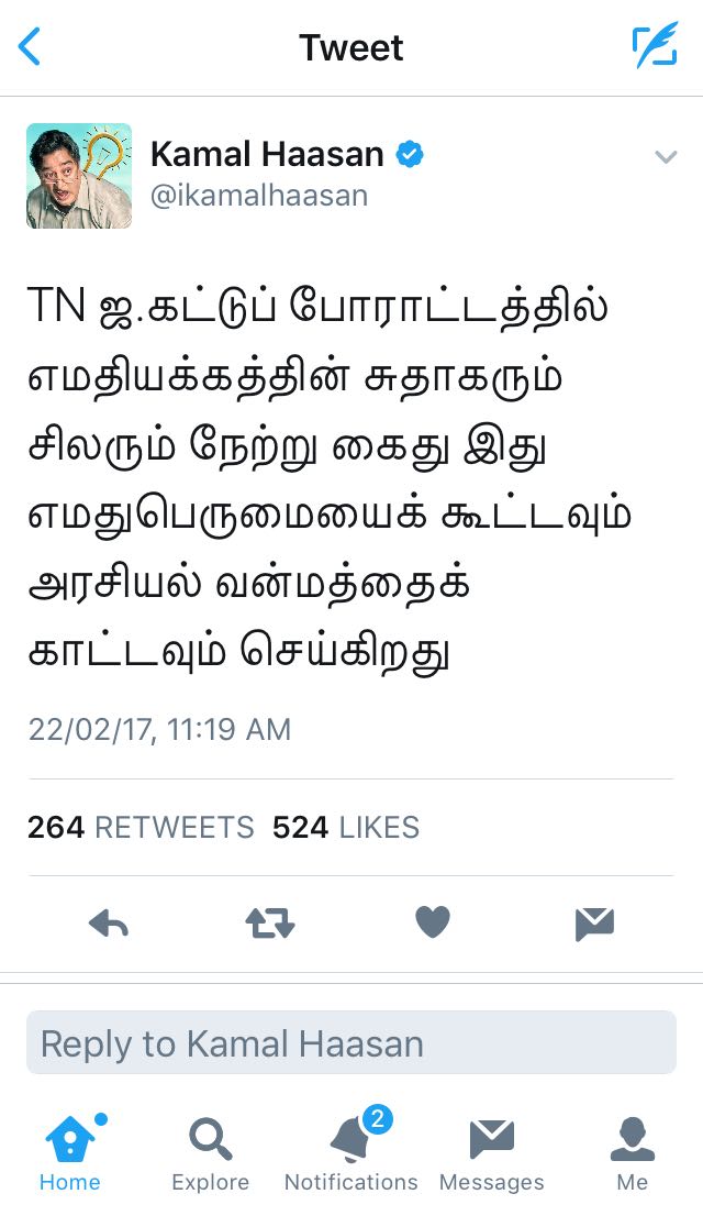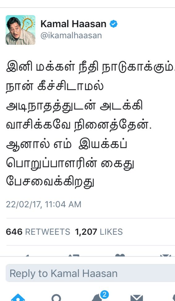 நடிகர் கமல்ஹாசன் இப்போதெல்லாம் தொடர்ந்து தமிழ்நாட்டில் நடந்து வரும் அரசியல் நிகழ்வுகள் குறித்து தன் மனதில் பட்டத்தை கூறி வருகிறார்.